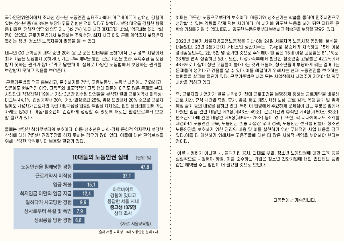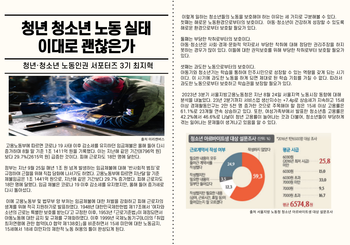 [노동인권 서포터즈] [기획기사] 청년·청소년 노동 실태 이대로 괜찮은가