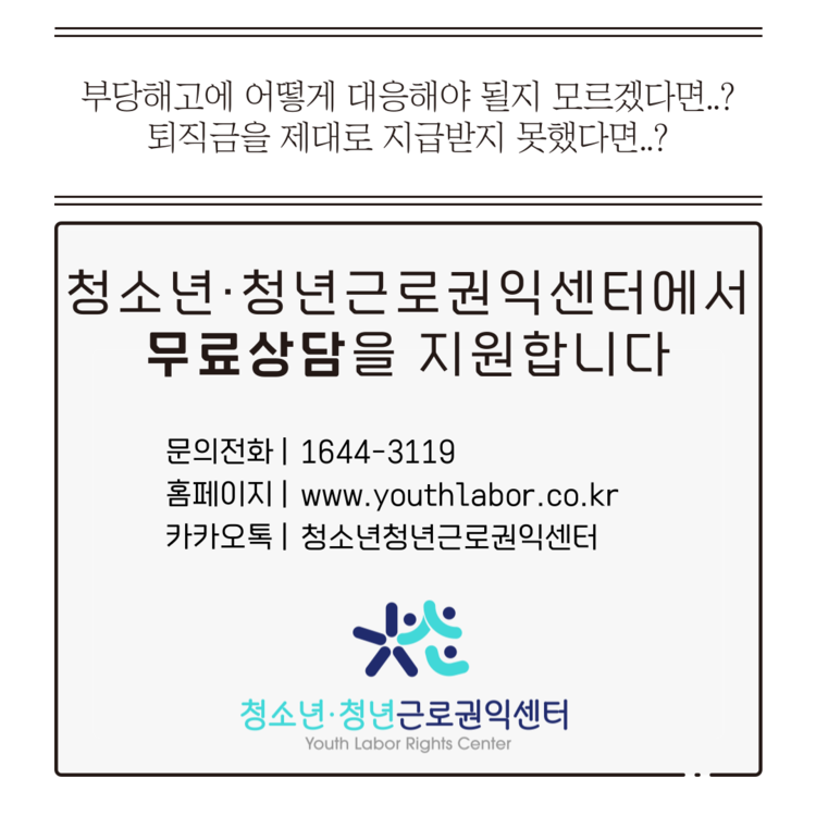 청소년·청년근로권익센터에서 무료 상담을 지원합니다!