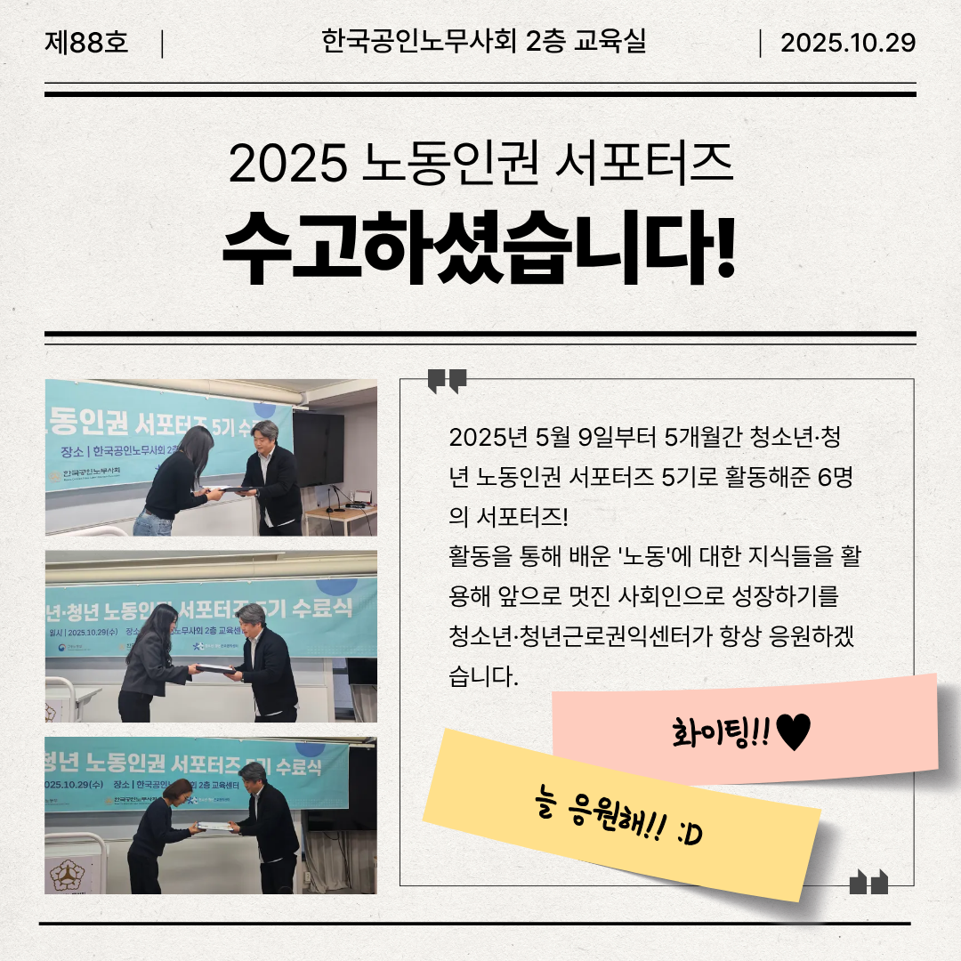 #청소년청년근로권익센터#청근익#노동인권#서포터즈#대학생#대외활동#5개월간여정#활동종료