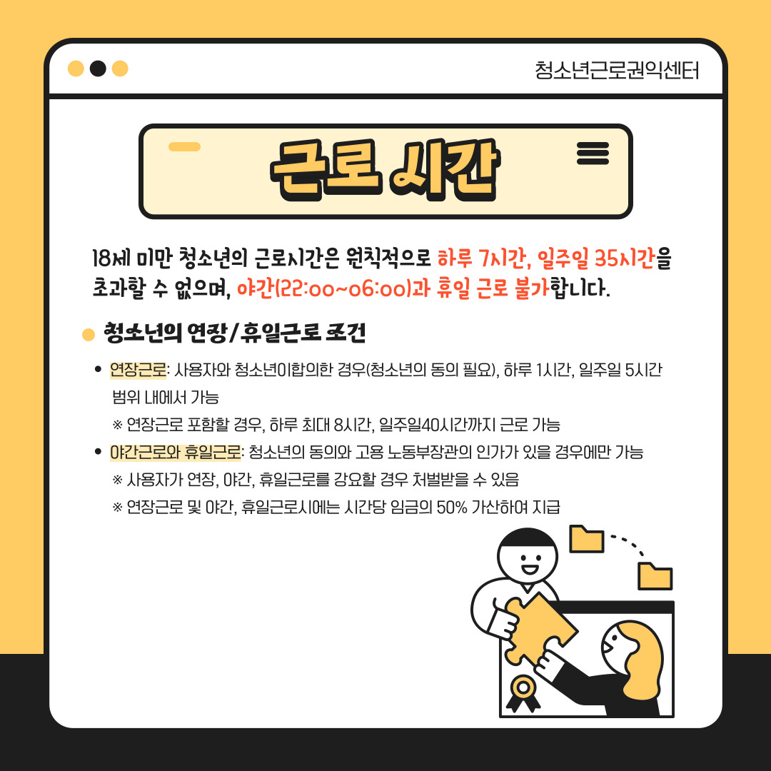 더 많은 정보를 원하신다면 청소년근로권익센터를 찾아주세요?