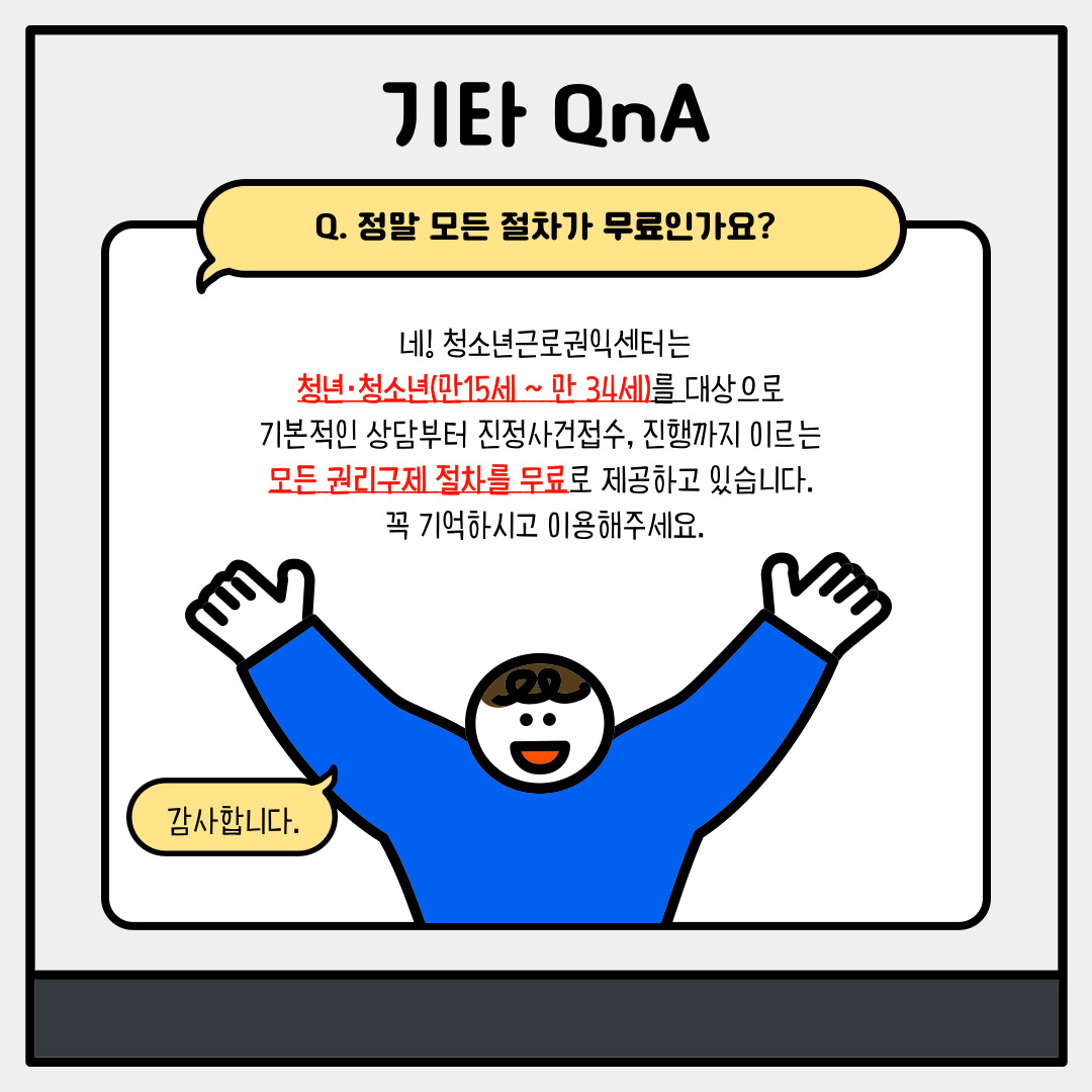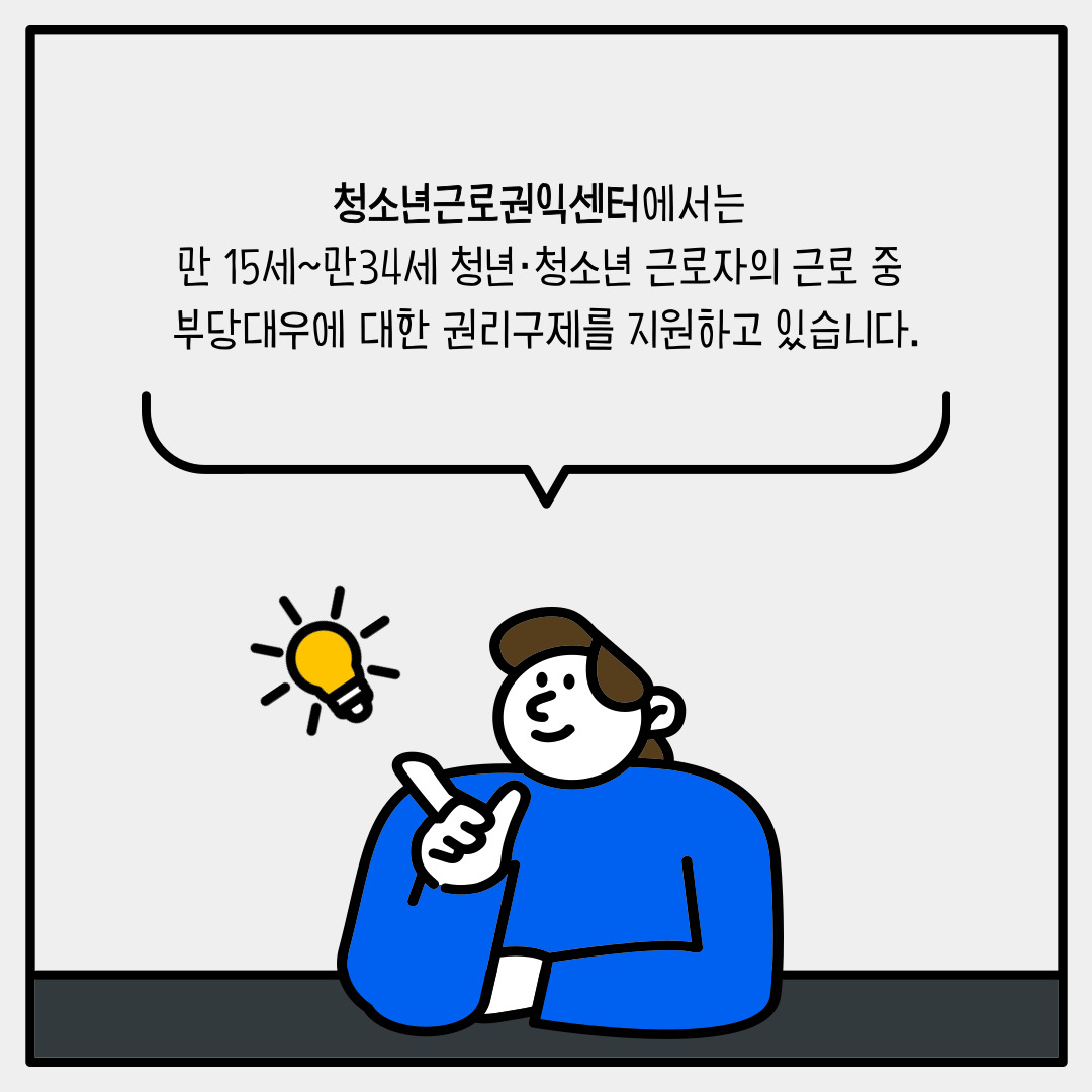 재미있게 보시고 해당 내용이 청소년근로권익센터를 이용하실 때 도움이 되길 바랍니다.