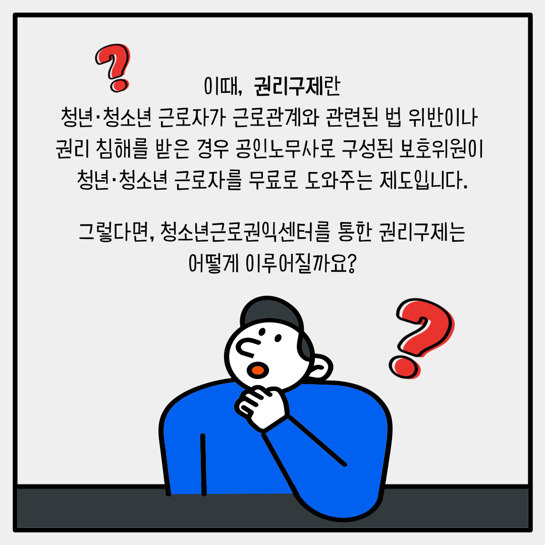 그래서 준비한 청소년근로권익센터를 통한 권리구제 과정에 대한 QnA 카드뉴스 !