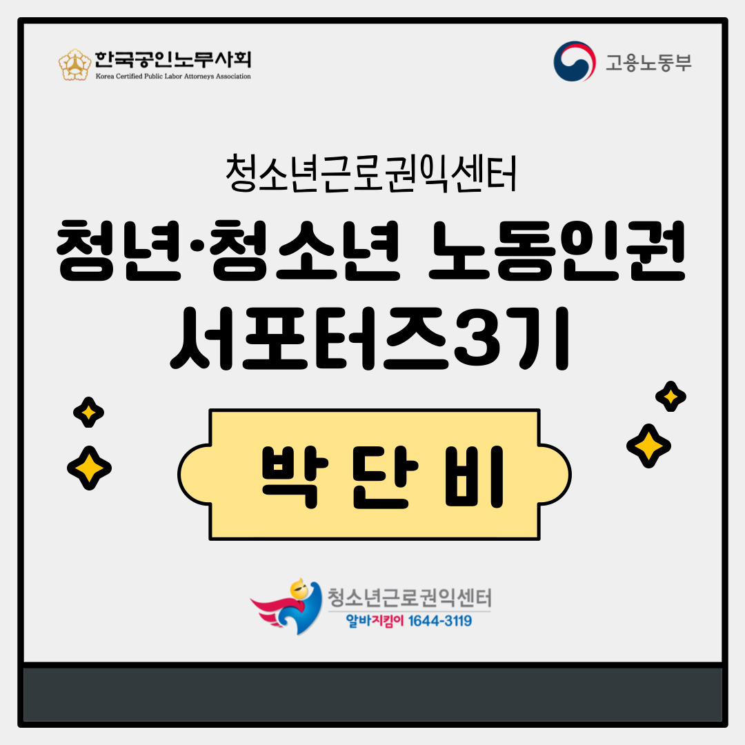 안녕하세요. 청년·청소년 노동인권서포터즈 3기 박단비입니다.