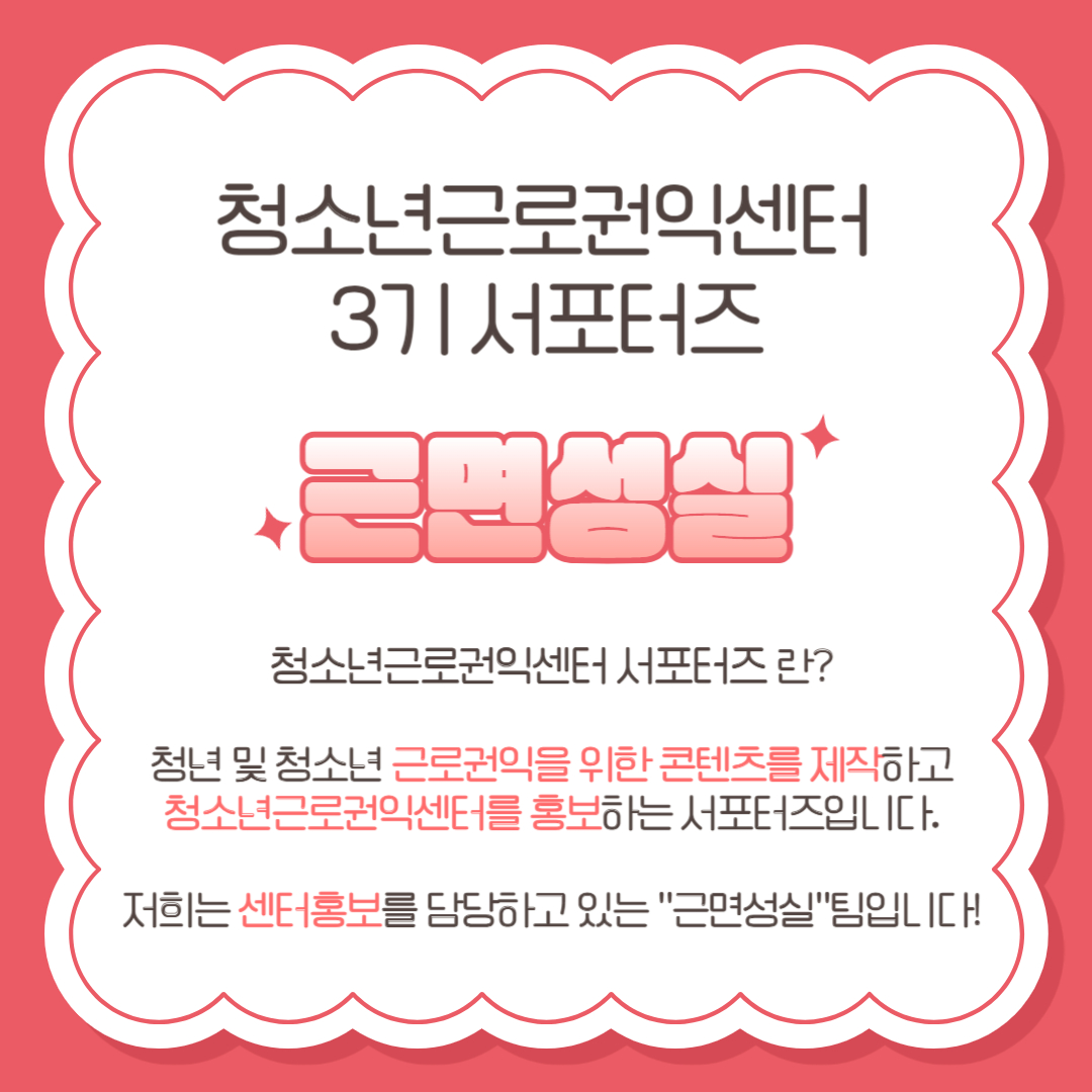 안녕하세요! 저희는 청소년근로권익센터 3기 서포터즈 센터홍보 팀입니다. ![]()