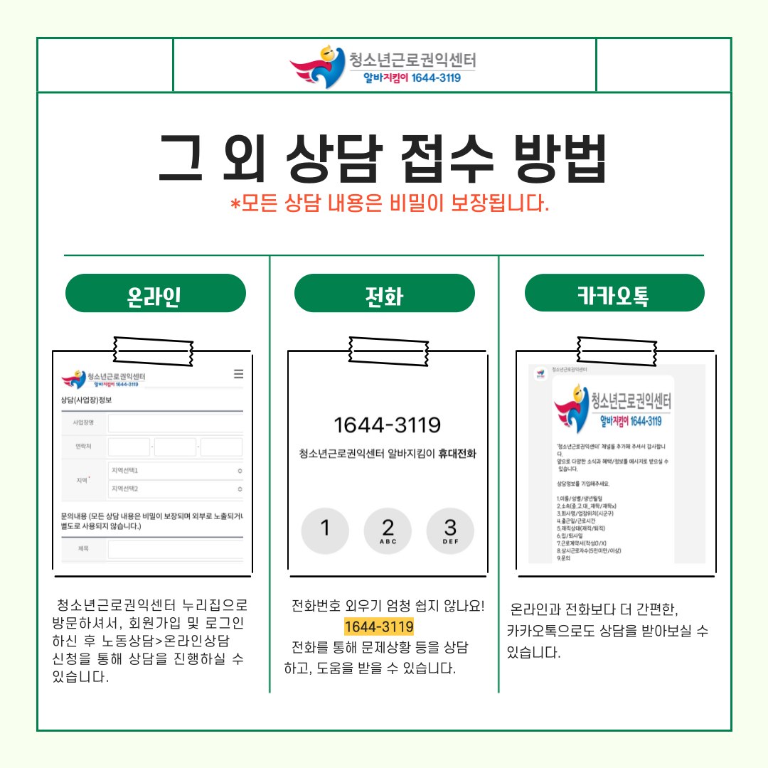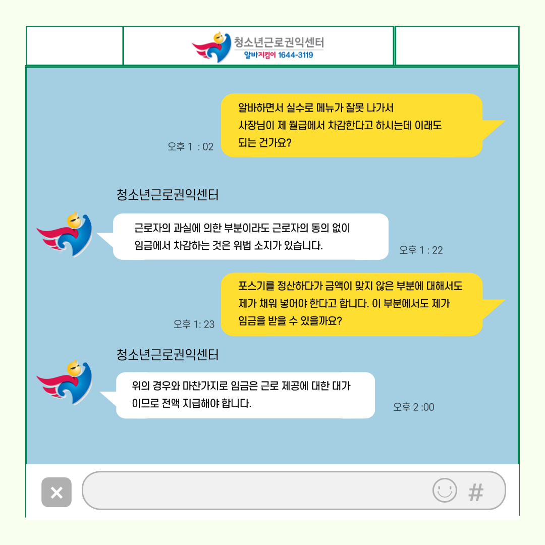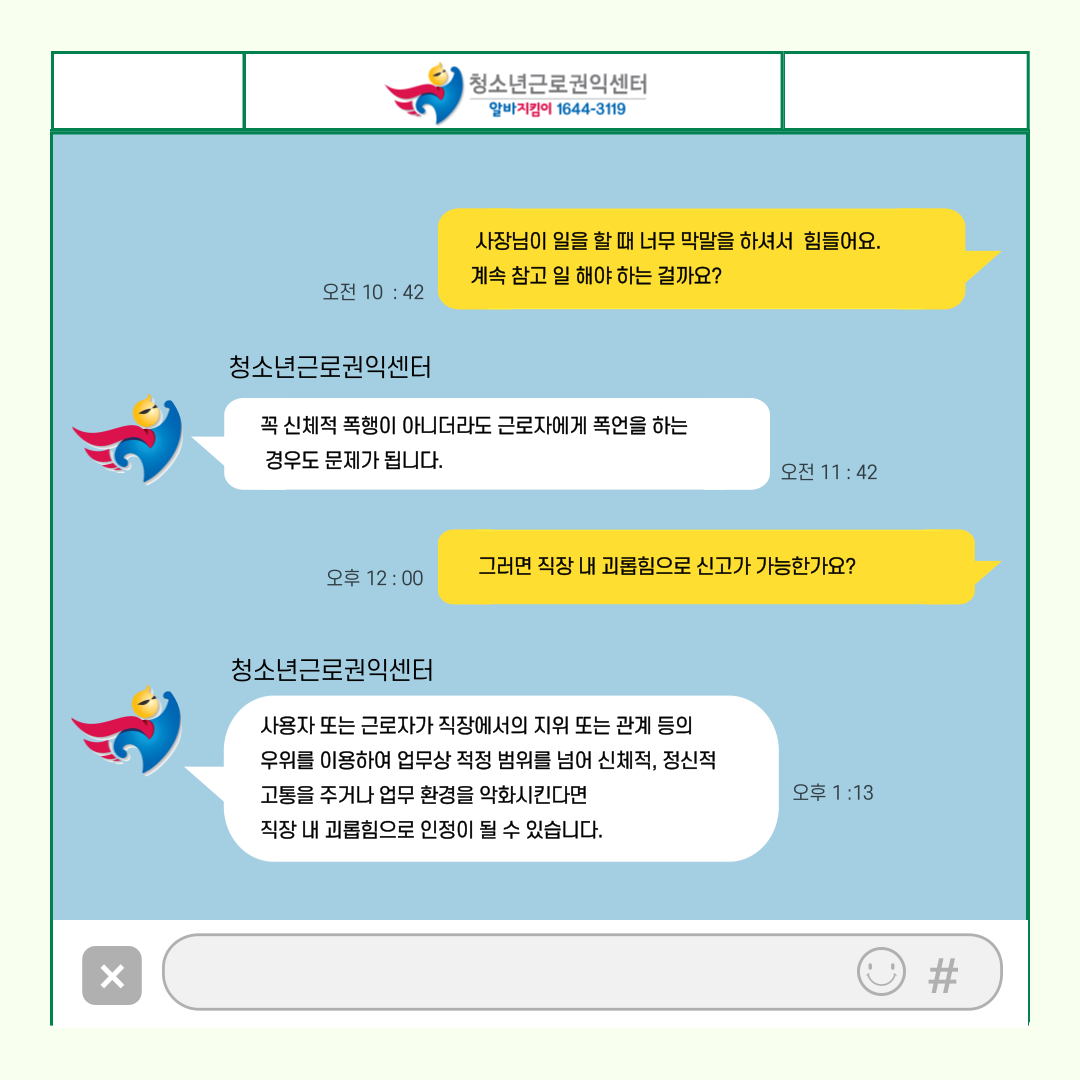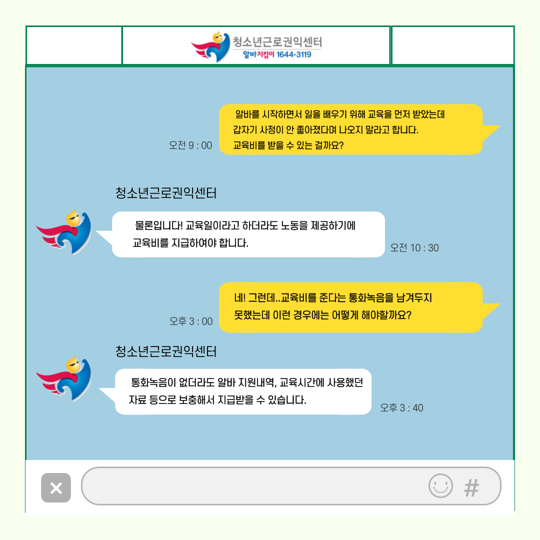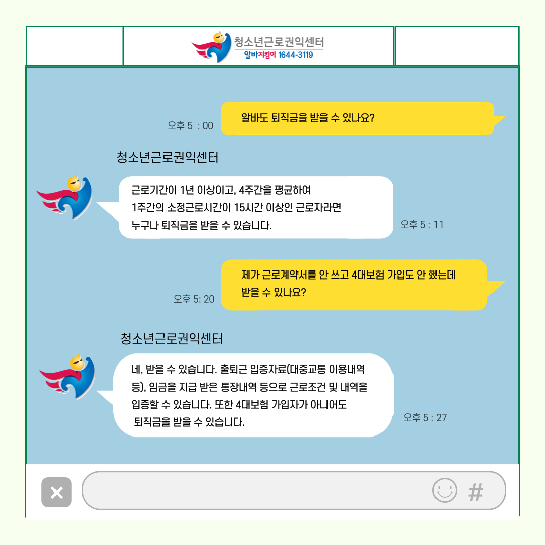 앞으로 알바를 하실 때 늘 ‘청소년근로권익센터’를 기억해주세요! ![]()