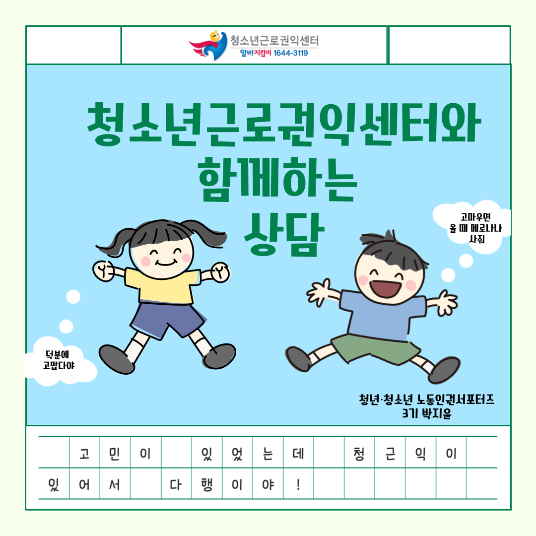 안녕하세요. ‘청소년근로권익센’의 청년•청소년 서포터즈 3기 박지윤입니다.![]()