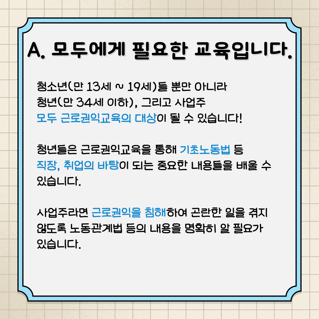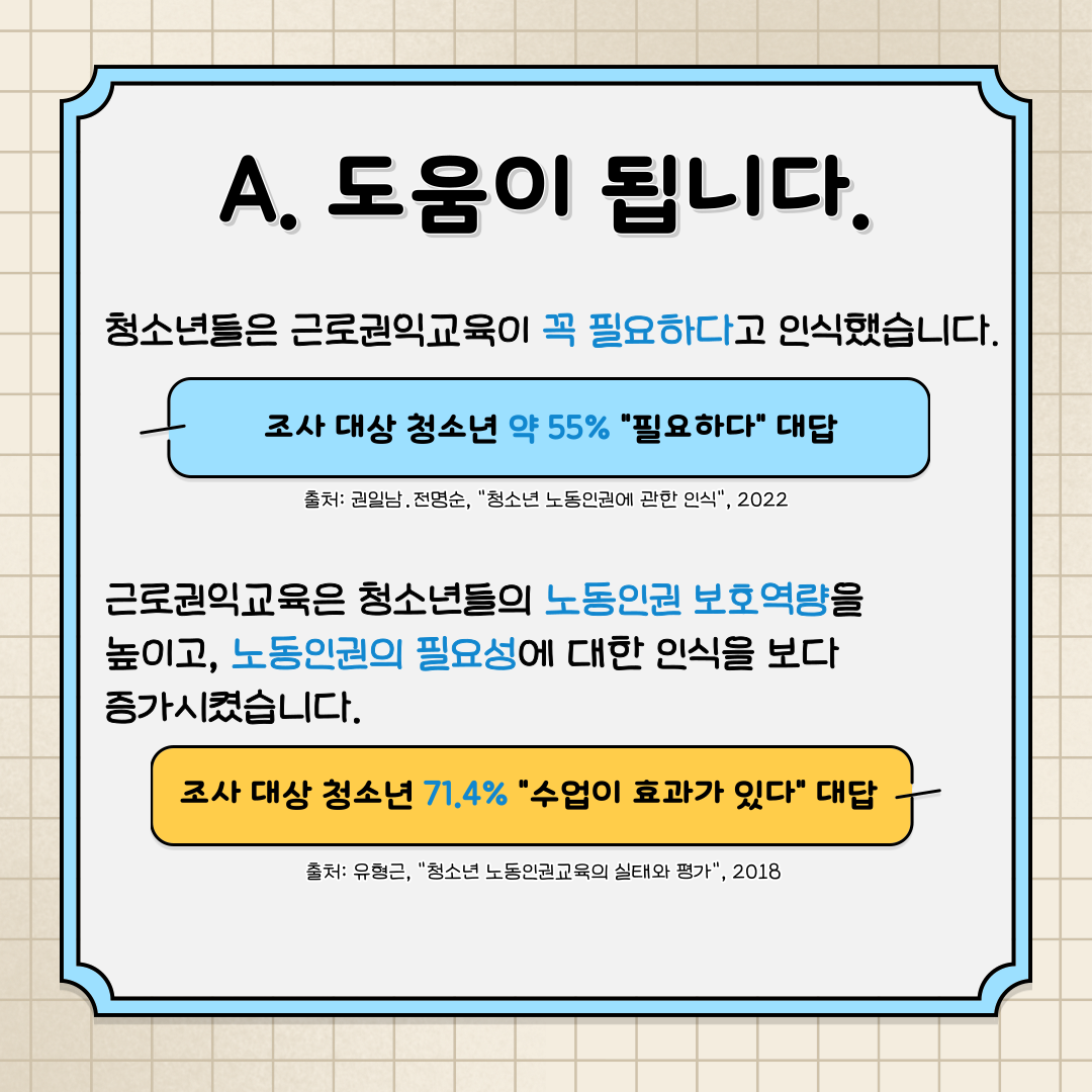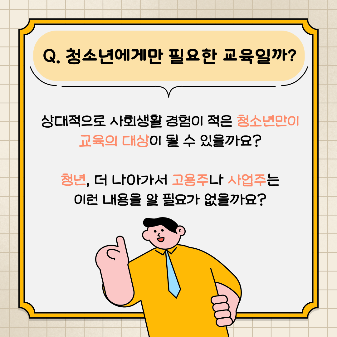 이번에 저는 청소년근로권익센터의 주요 활동 중 하나인 근로권익교육에 대해 소개해보려고 합니다.