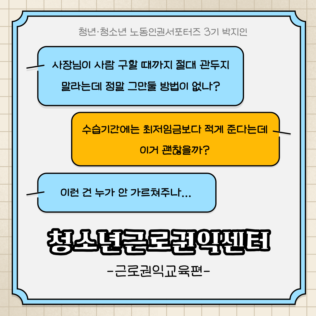 안녕하세요! 청년, 청소년 노동인권 서포터즈 3기 박지인입니다.