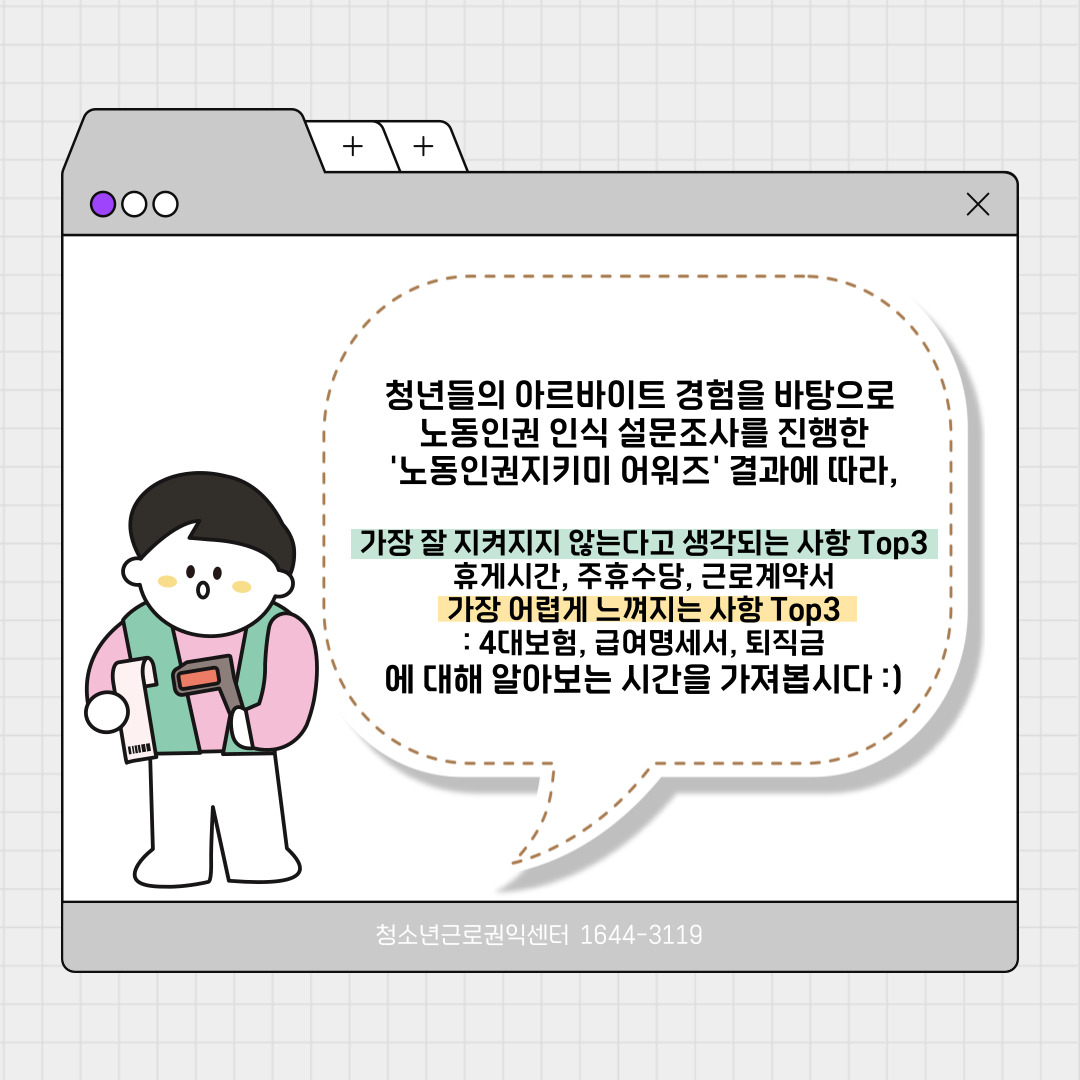 노동인권에 대한 인식 향상에 도움이 되길 바랍니다.