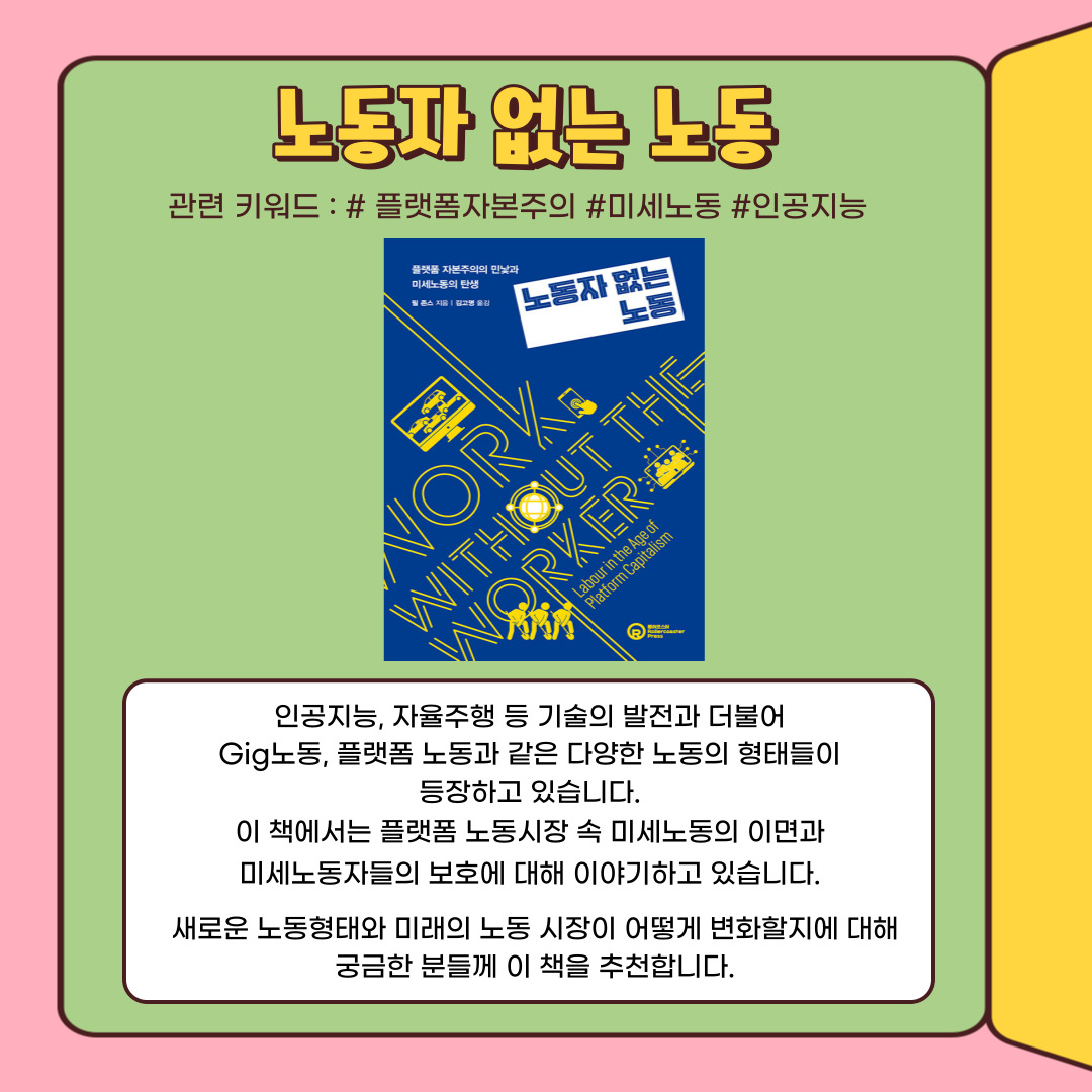 다양한 노동형태나 노동자들에 대해 조명하고 있는 좋은 책들이 많다는 생각을 했습니다.