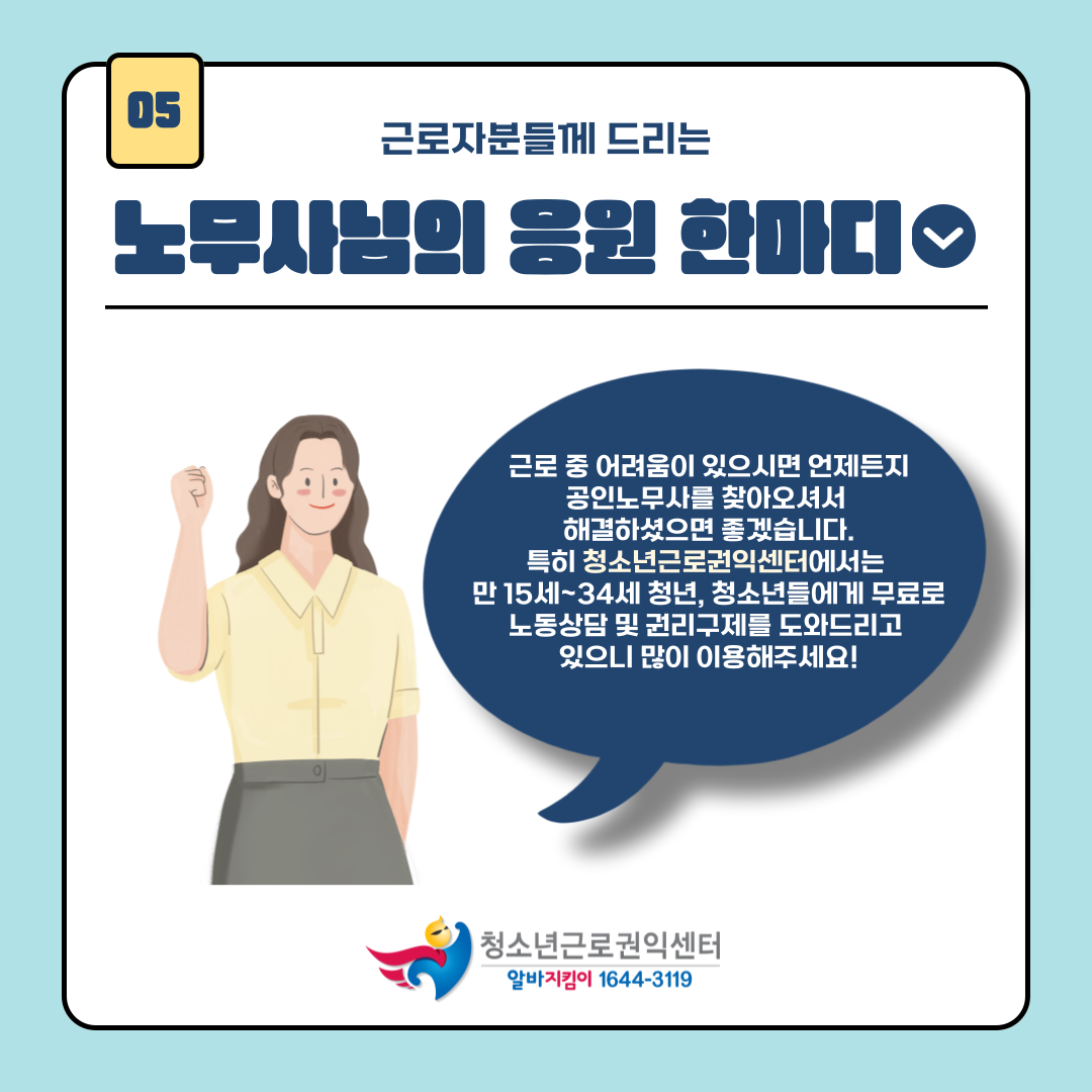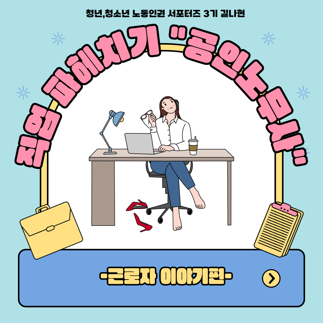 안녕하세요. 청년 청소년 노동인권 서포터즈 3기 길나현입니다.