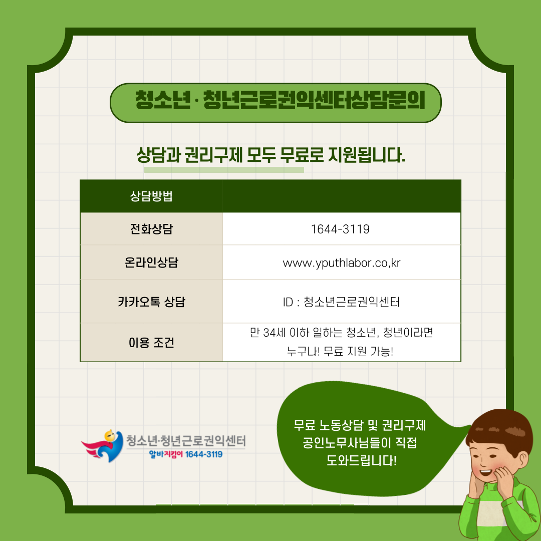 계속해서 청소년 ·청년근로권익센터가 응원하겠습니다!✨