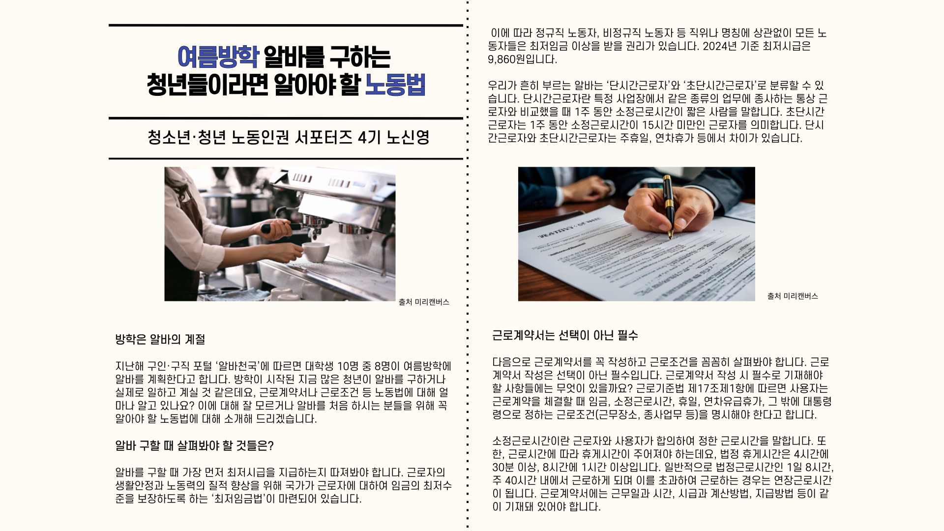[노동인권 서포터즈][기사] 여름방학 알바를 구하는 청년들이라면 알아야 할 노동법