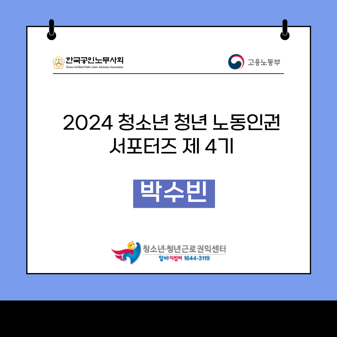 안녕하세요 노동인권 서포터즈 4기 박수빈입니다.