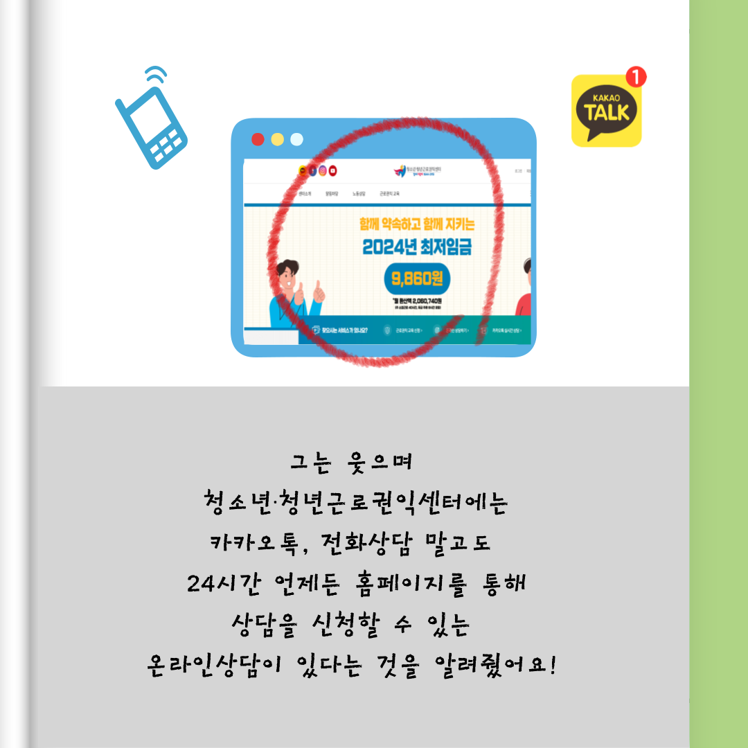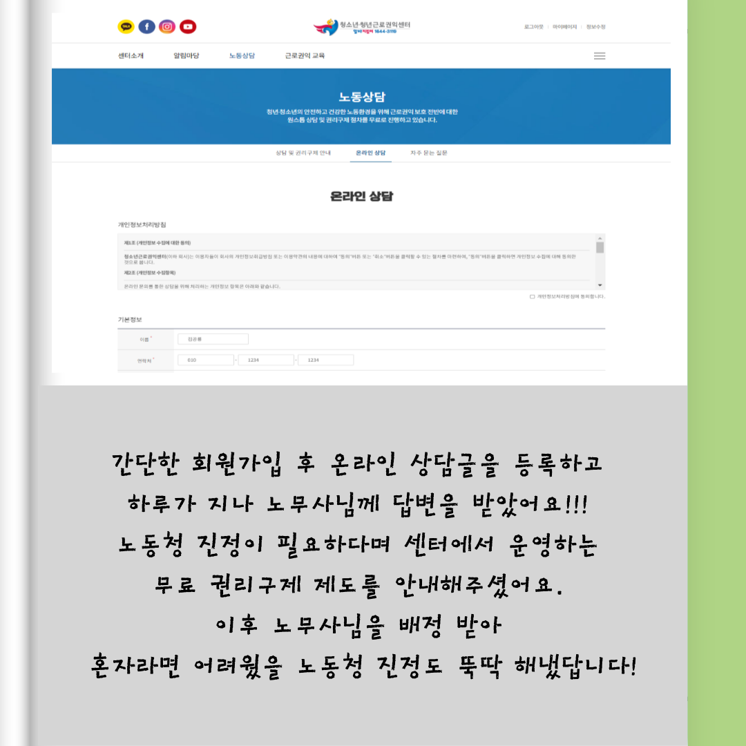 [노동인권 서포터즈] [카드뉴스] 알바생 청익이 이야기 <온라인 상담편>