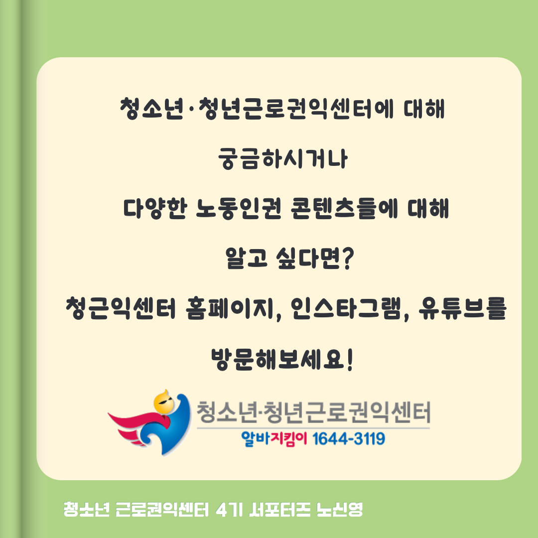 안녕하세요. 노동인권 서포터즈 4기 노신영입니다.