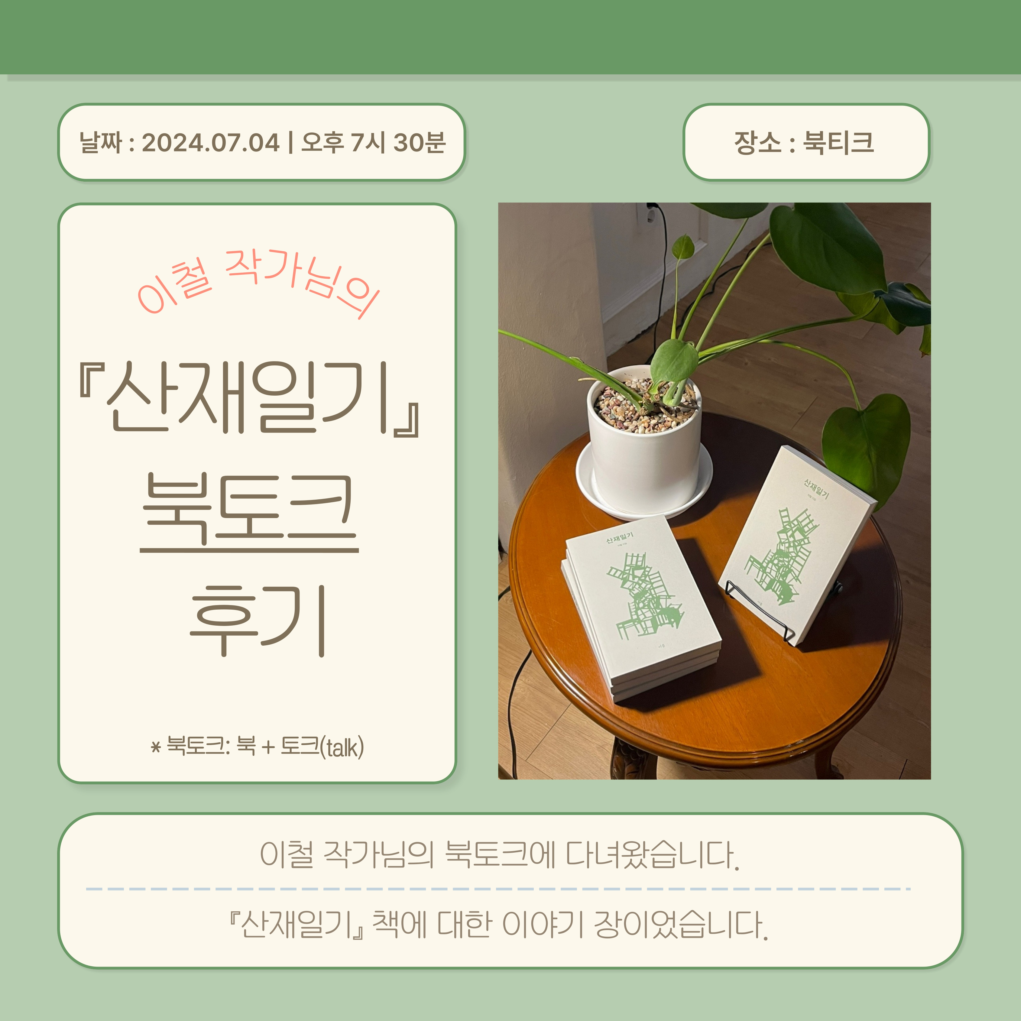 저는 이철 작가님의 『산재일기』에 대한 북토크를 다녀왔습니다.