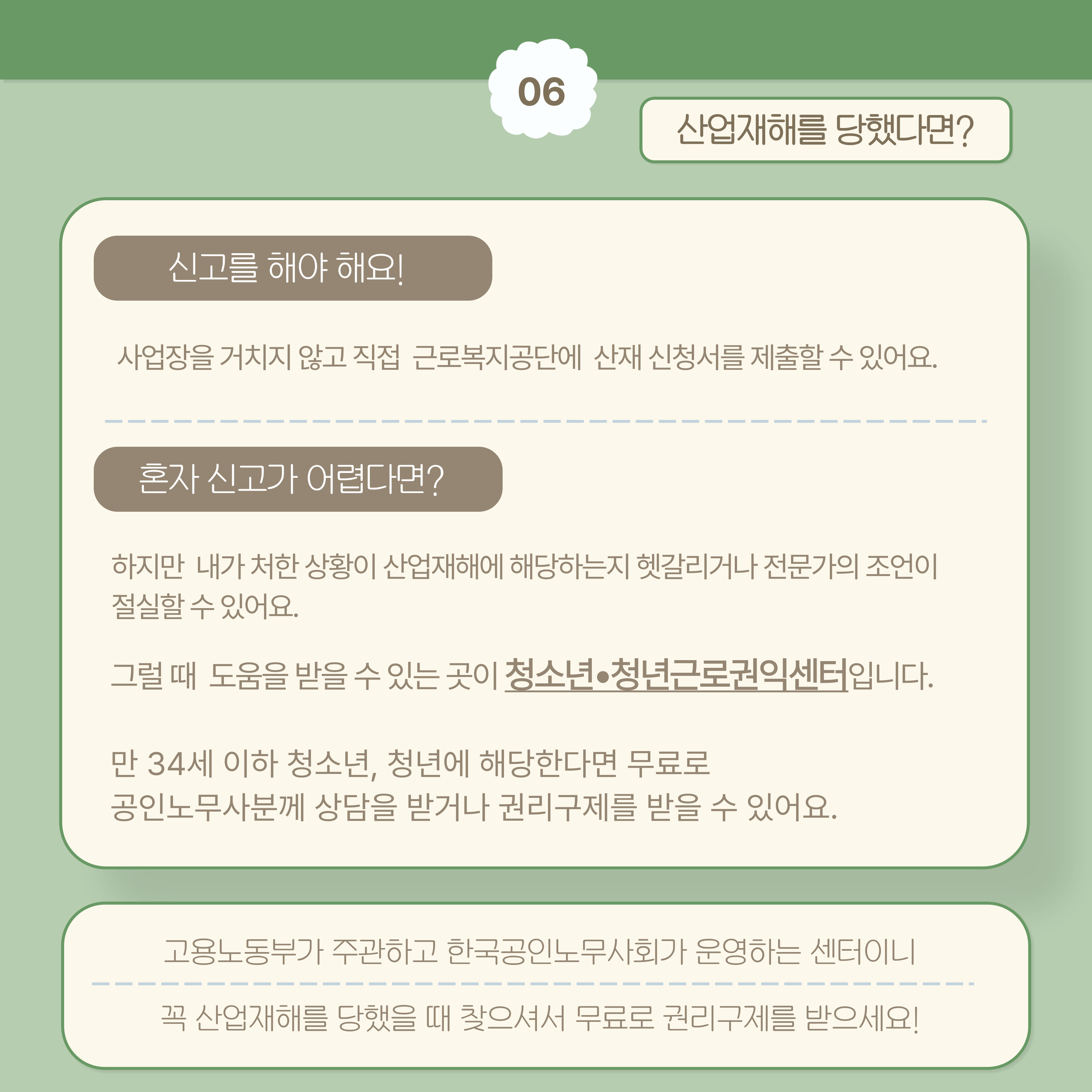물론 직접 신고할 수 있지만, 내가 겪은 것이 산업재해인지 혹은 절차가 너무 어렵지는 않은지
