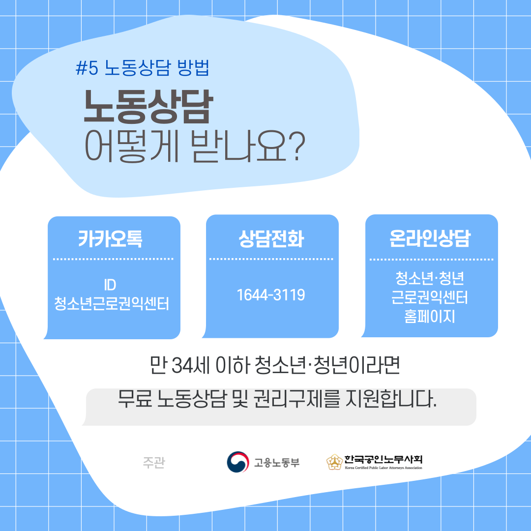(카톡상담) ID : 청소년청년근로권익센터