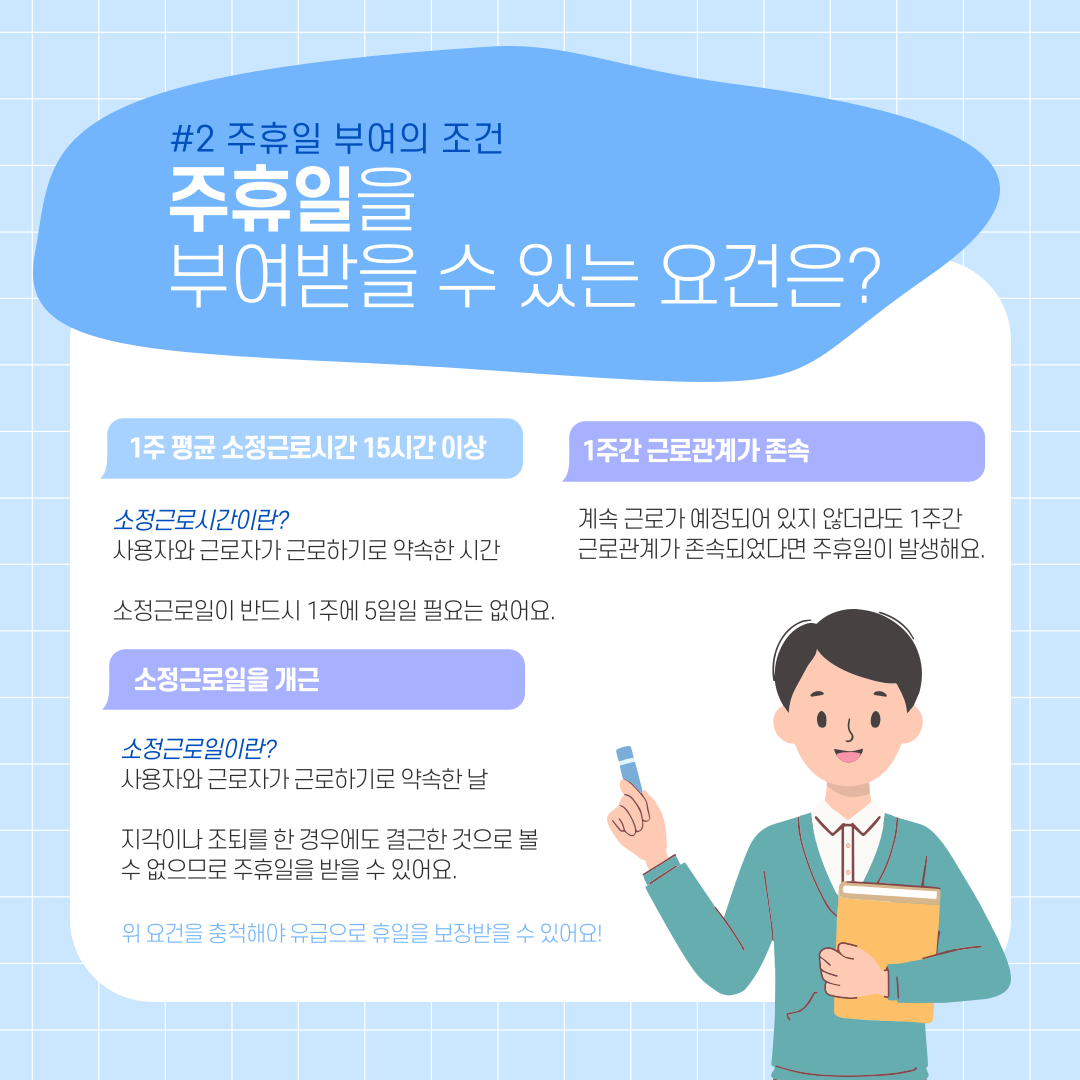 그래서 오늘은 그런 분들을 위해 주휴수당에 대한 카드뉴스를 준비했습니다.
