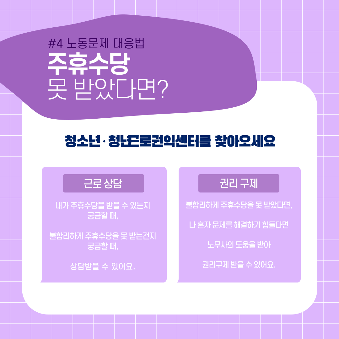 못하고 있다면 청소년·청년근로권익센터에 도움을 요청해주세요!