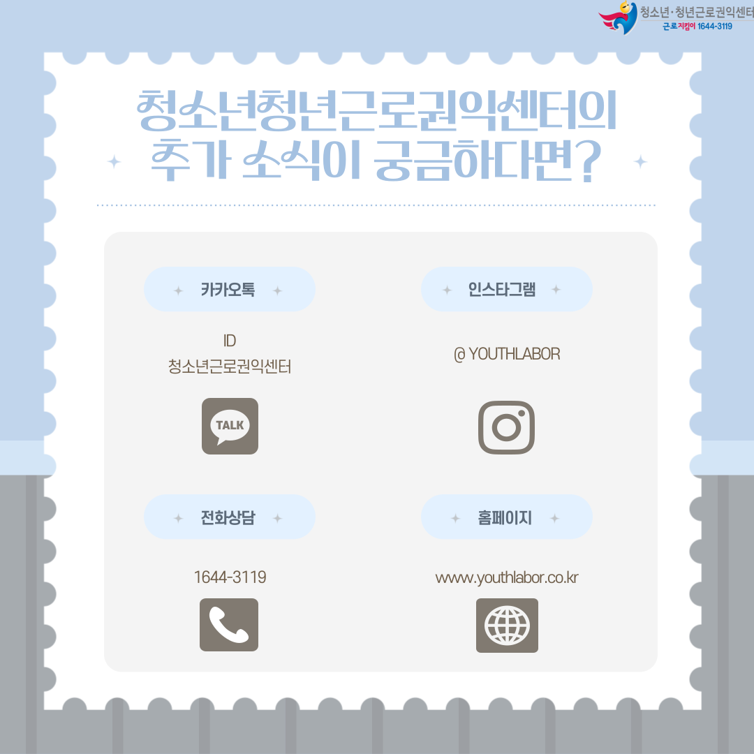 이외에도 더 많은 정보를 원하신다면 청소년청년근로권익센터를 찾아주세요