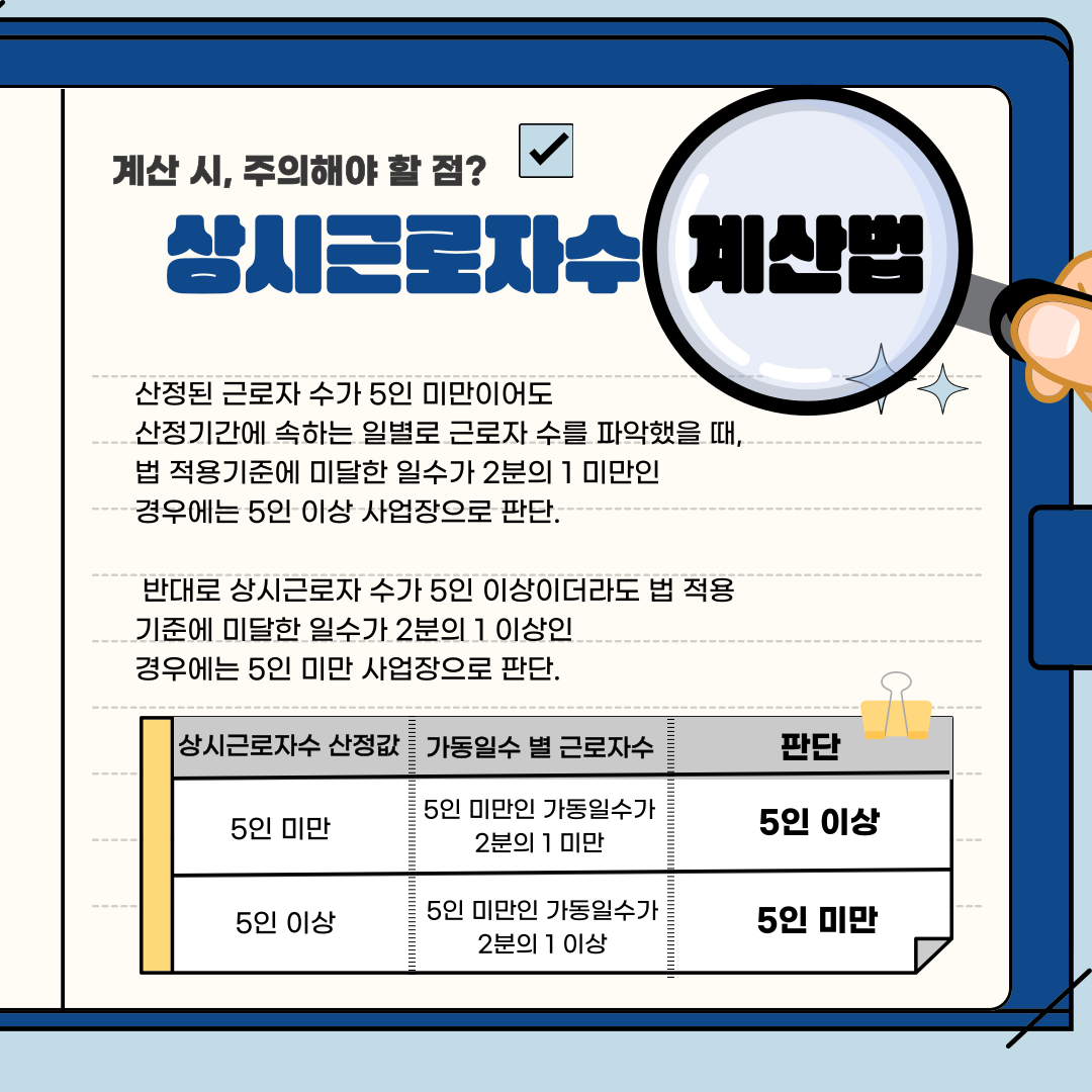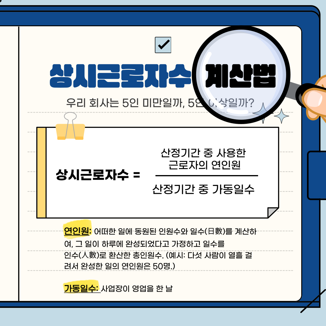 상시근로자수의 정의, 계산법, 그리고 5인 미만 사업장의 경우, 어떻게 근로기준법이 적용되는지를 담아보았답니다 D