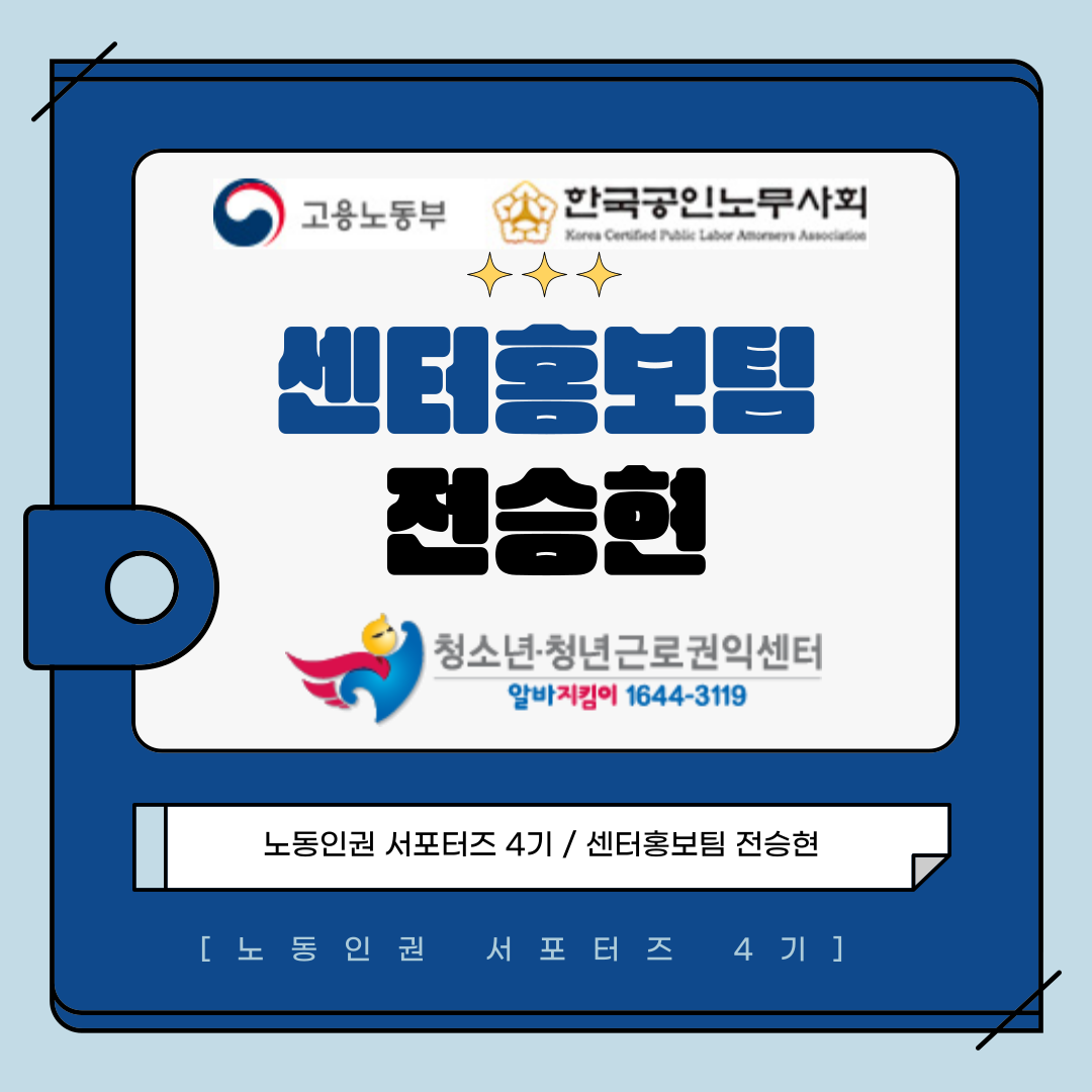 안녕하세요, 노동인권 서포터즈 4기 센터홍보팀 전승현입니다 )