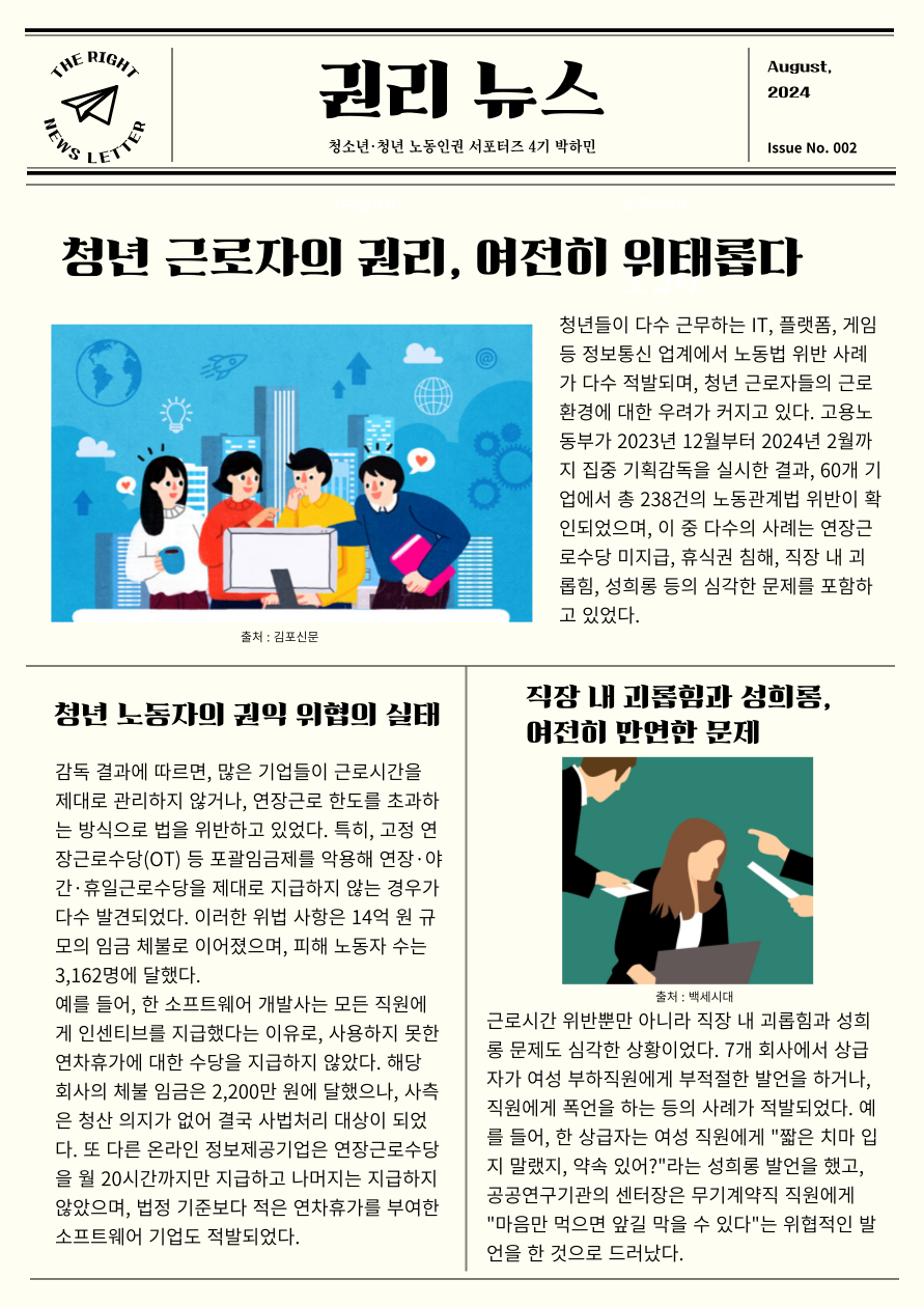이번에는 청년 근로자의 권리 다루고 있는 기획기사를 준비해보았습니다!✨