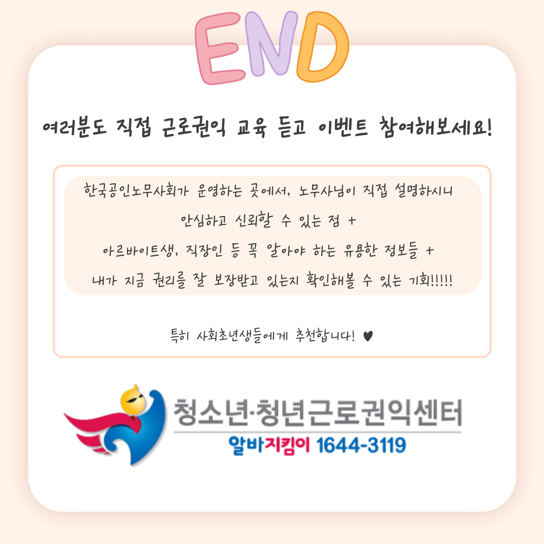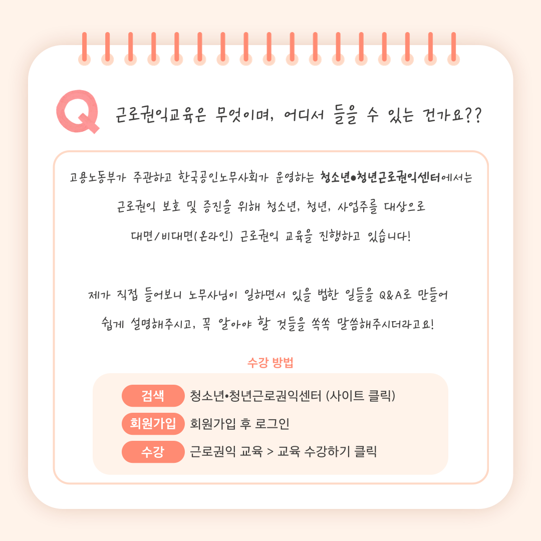 [노동인권서포터즈][카드뉴스] 제가 직접 들어봤습니다! 근로권익교육