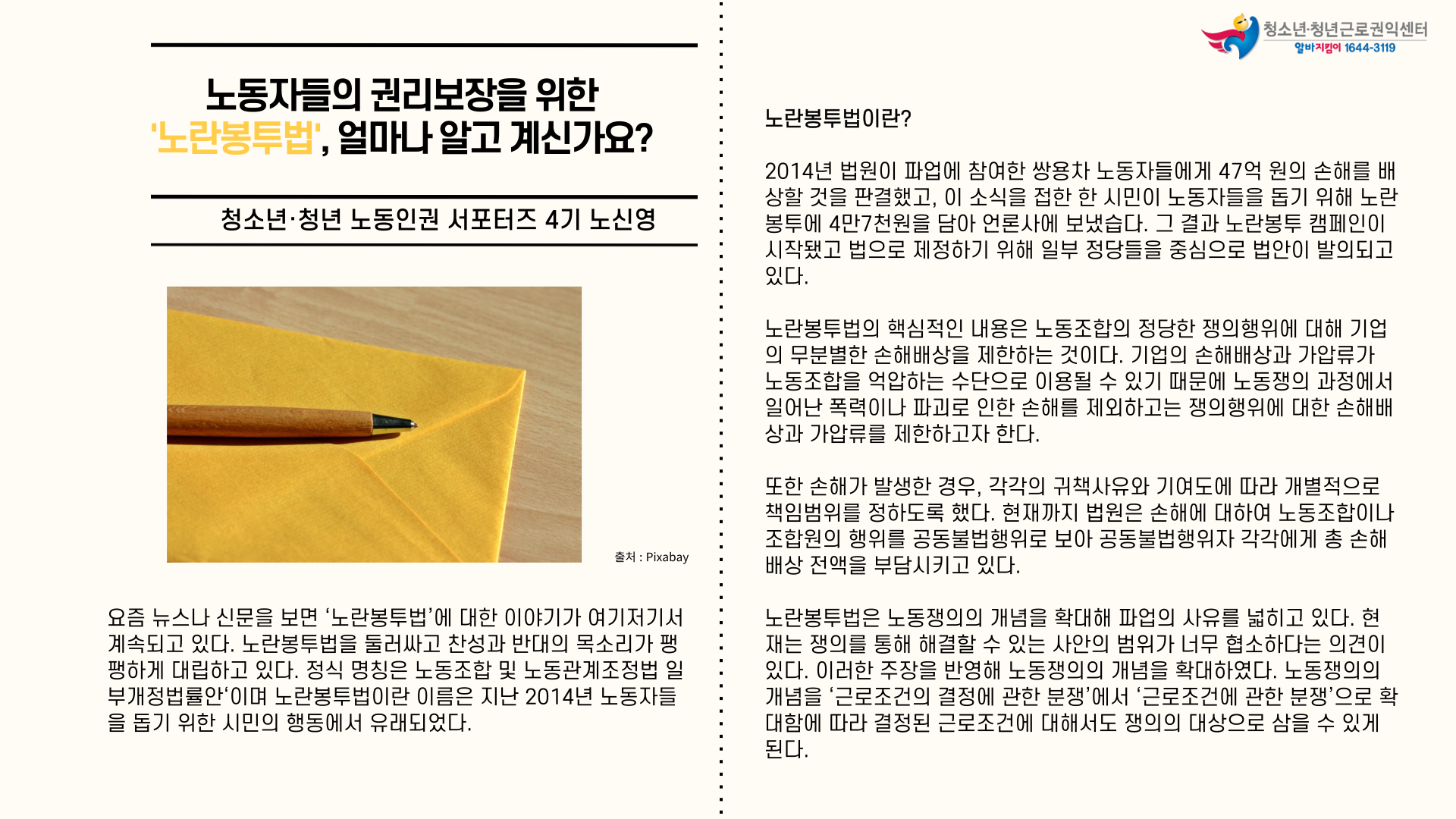 [노동인권 서포터즈] [기획기사] 노란봉투법, 얼마나 알고 계신가요?