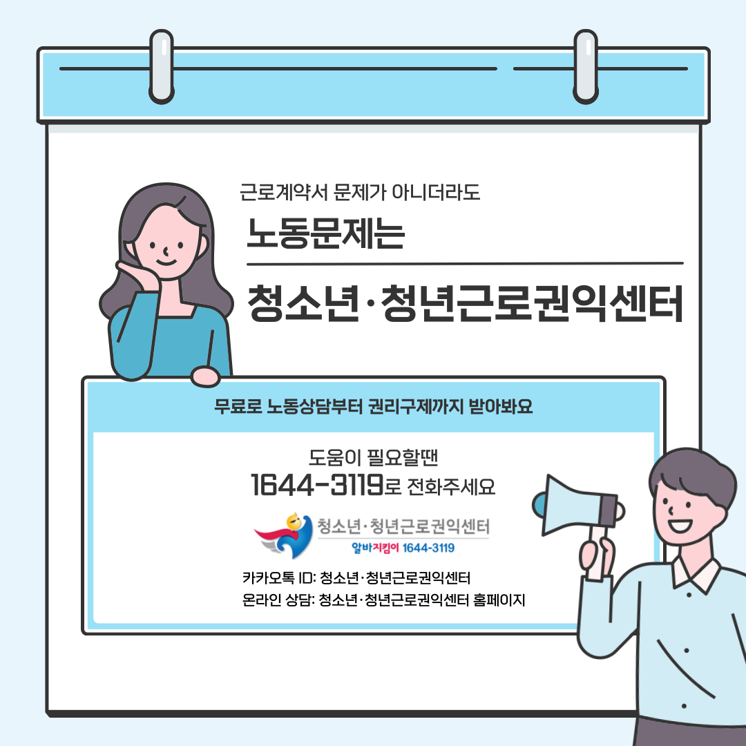 마땅히 누려야 할 우리의 노동 권리를 슬기롭게 지켜나가는 청소년, 청년이 되기를 청청근익이 응원하겠습니다!