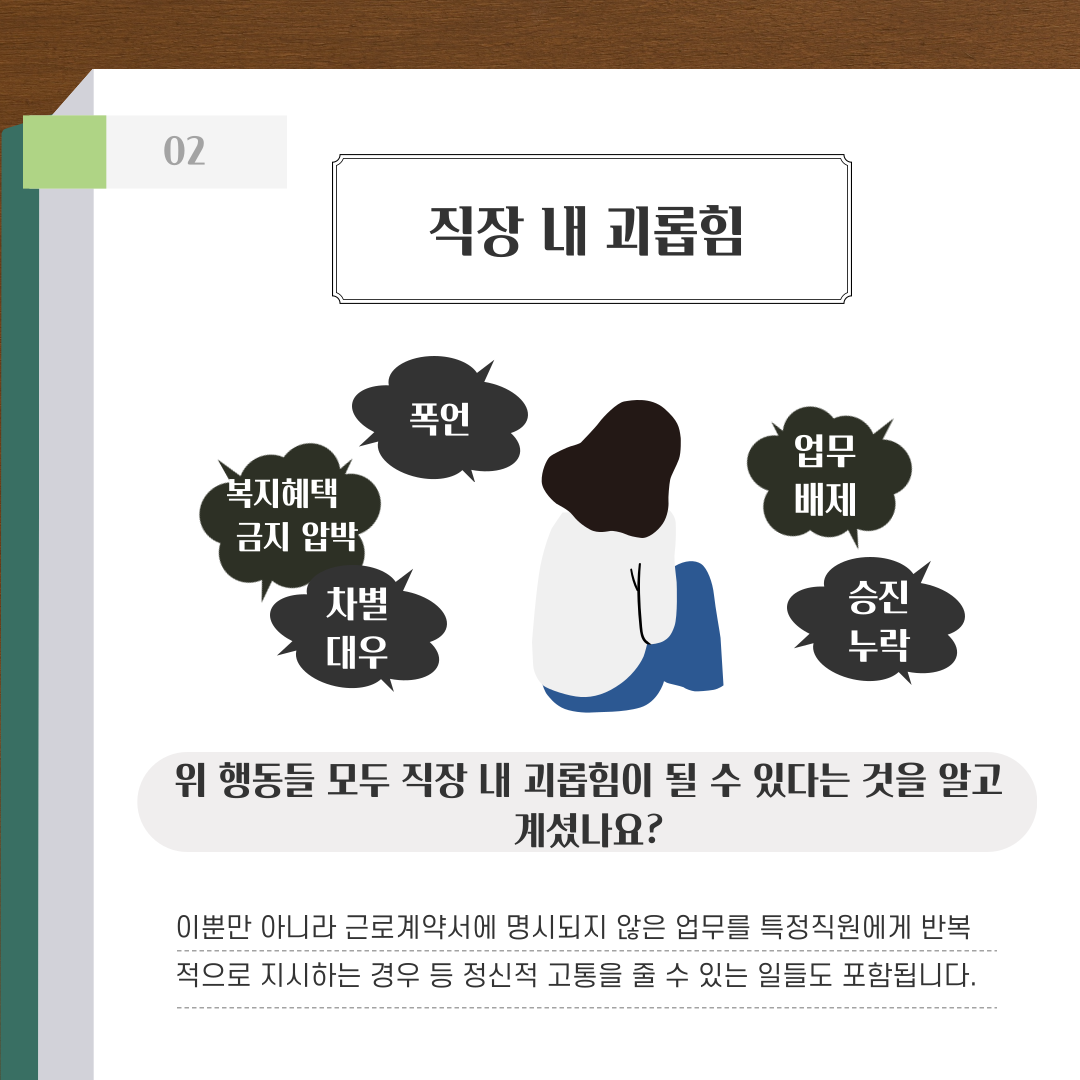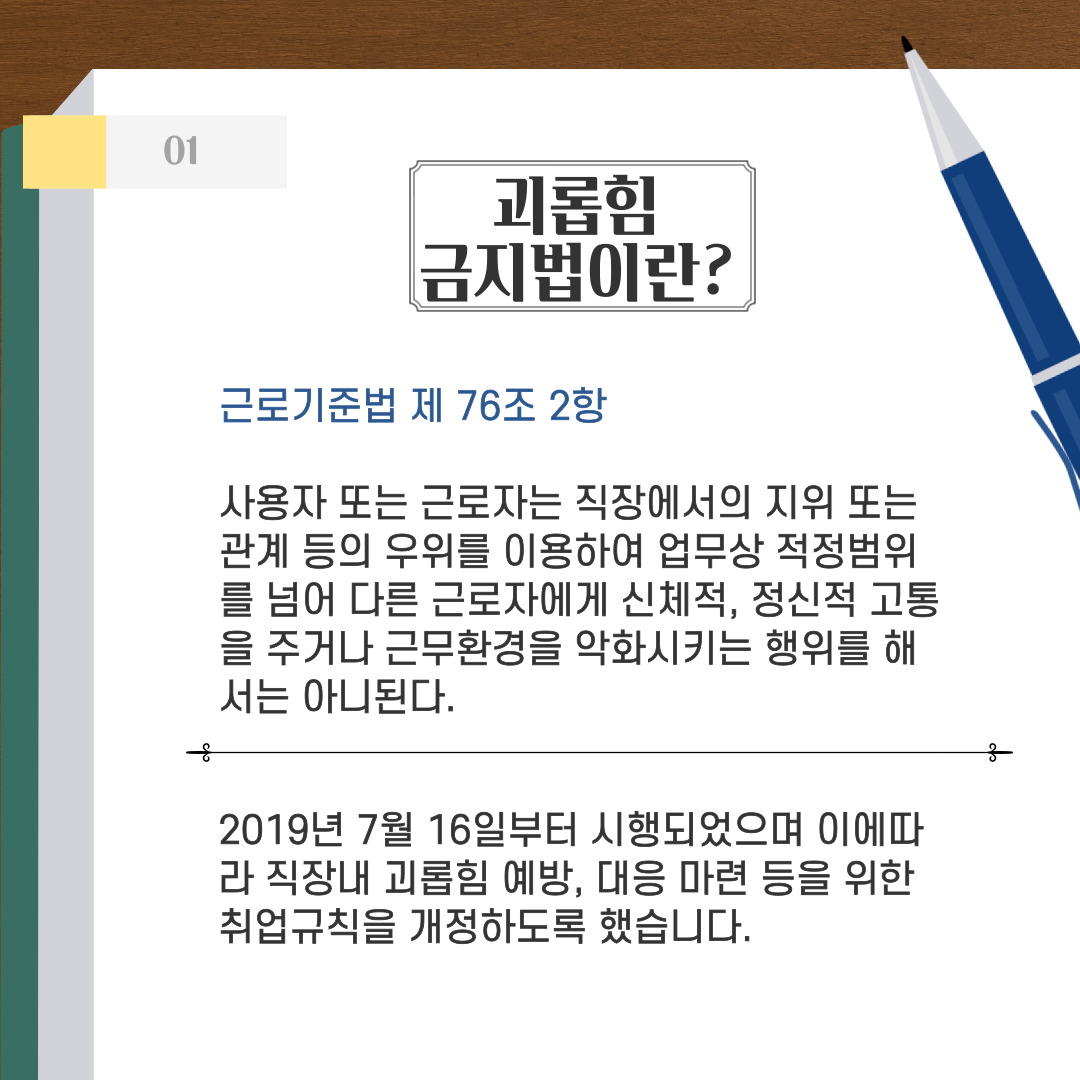 이 문제에 대해 자세히 알아보고 대처하기 위한 방법을 알려드리기 위해 직장 내 괴롭힘 금지법에 관한 를 준비했습니다.