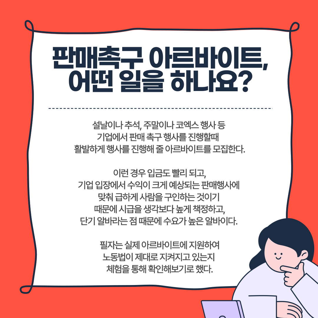 저번 '체헐리즘' 시리즈에 이어 이번에는 '판매촉구 아르바이트(판촉)'을 진행해보았습니다.