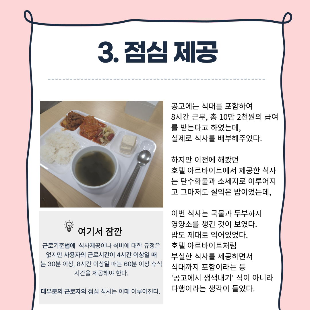 의외로 호텔 아르바이트보다 대우도 좋았고, 식사도 맛있게 제공해주었지만