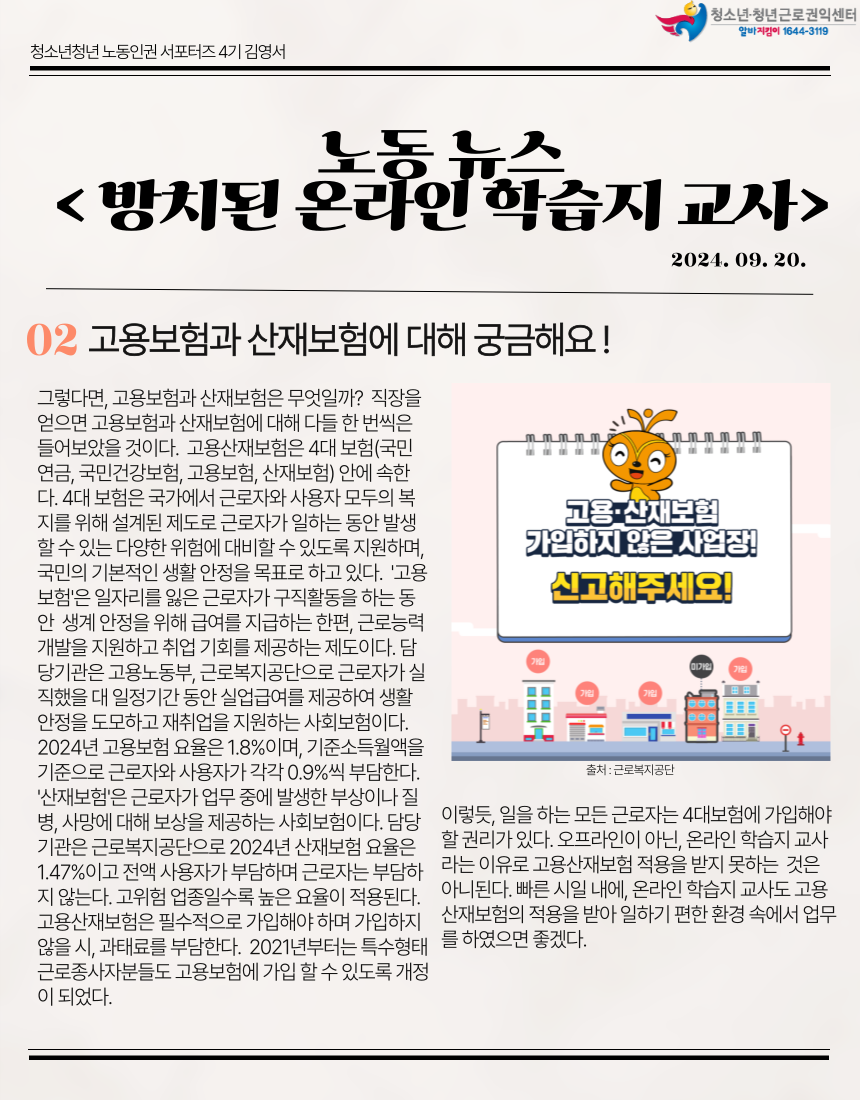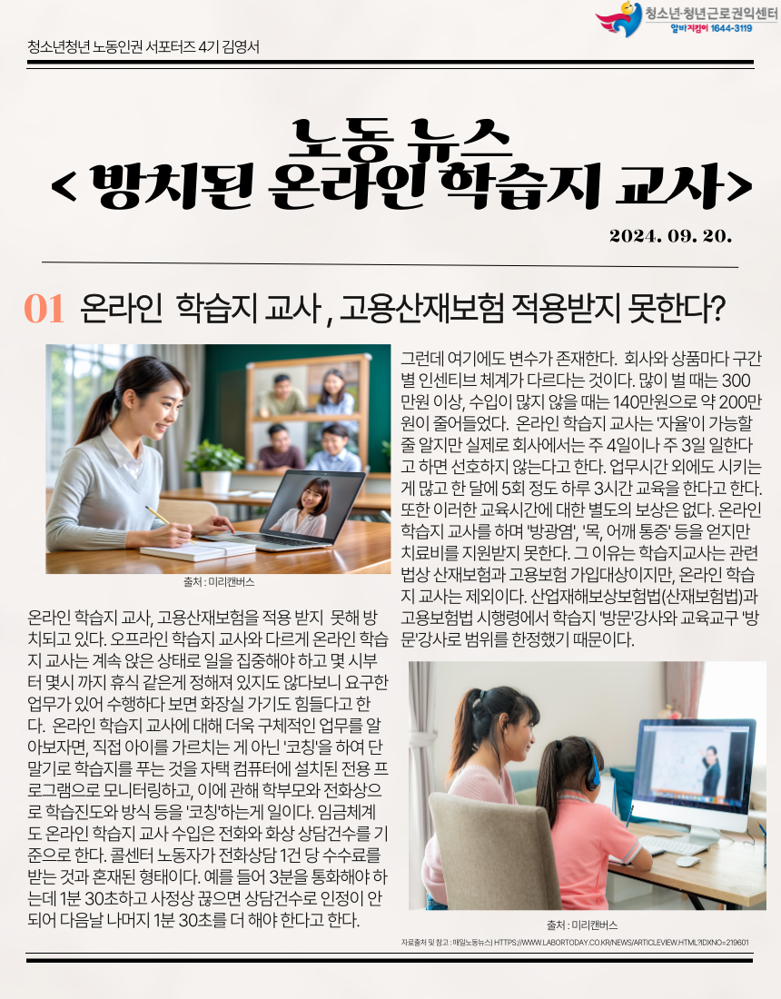 오늘은 고용산재보험 적용을 받지 못하는 온라인 학습지 교사분들의 상황을 기획기사로 제작해 보았습니다