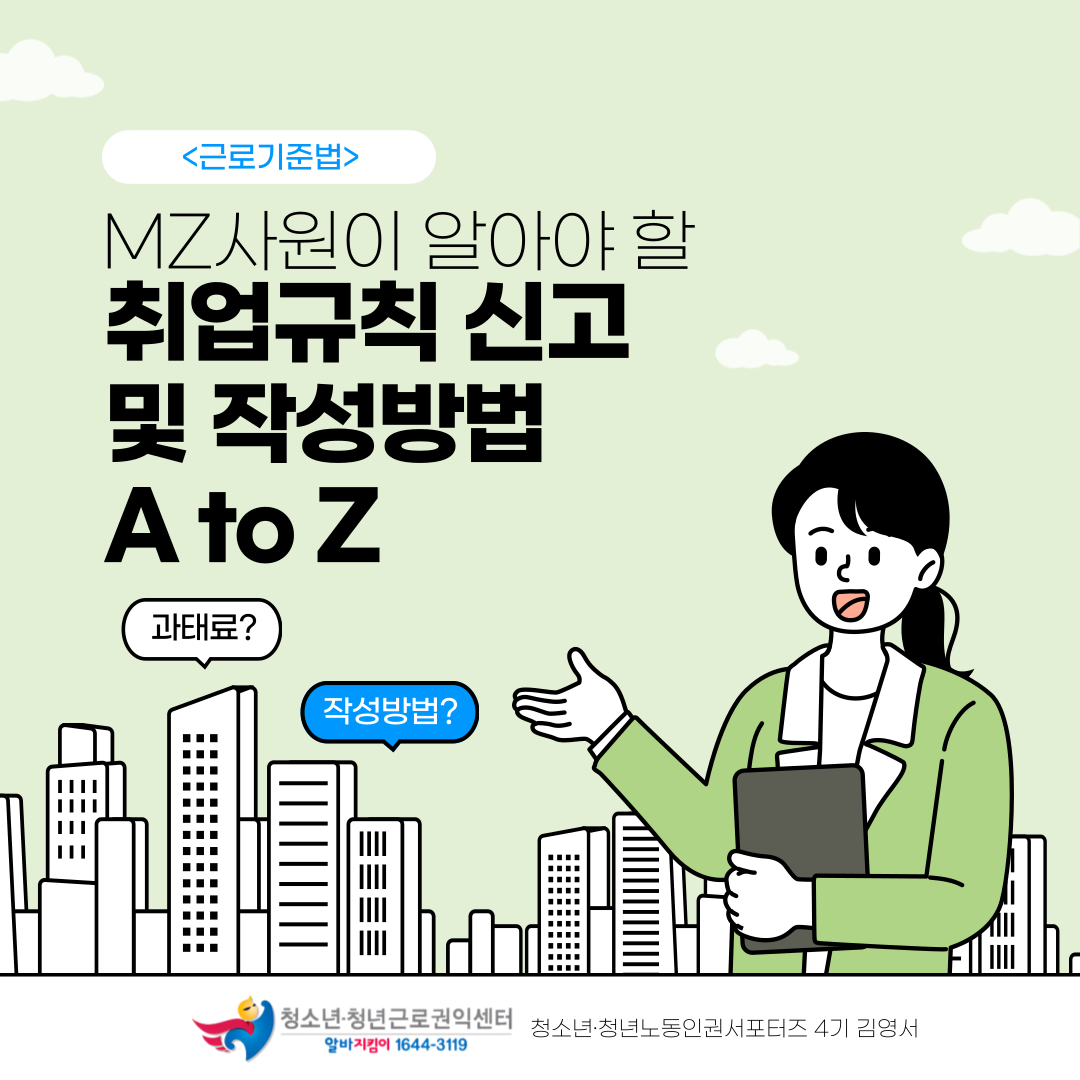 [노동인권 서포터즈][카드뉴스] MZ사원이 알아야 할 취업규칙 신고 및 작성방법 A to Z