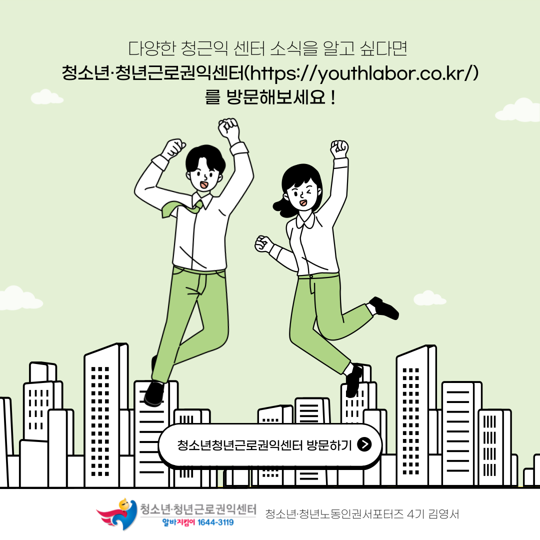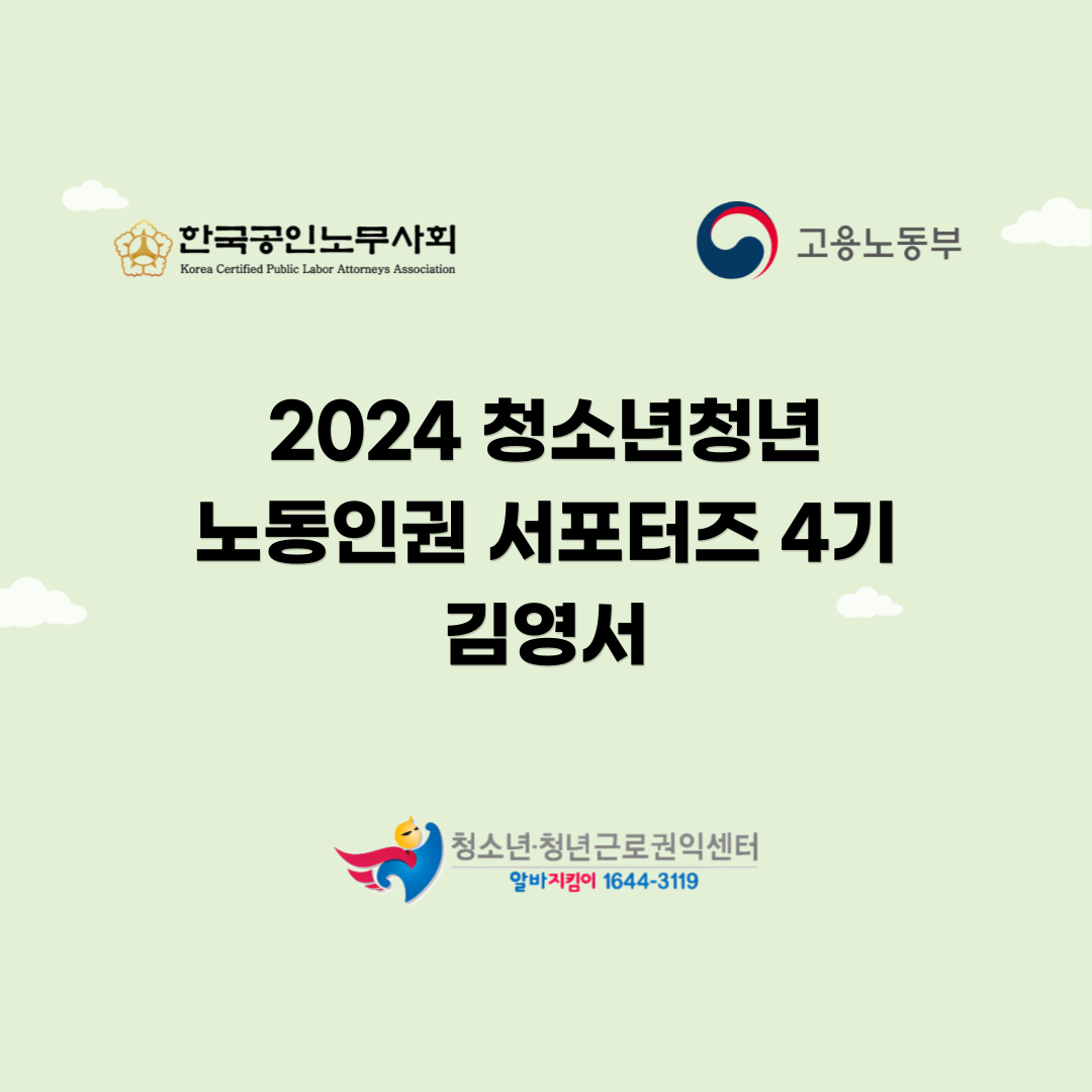 안녕하세요 ! 청소년청년노동인권서포터즈 4기 김영서입니다