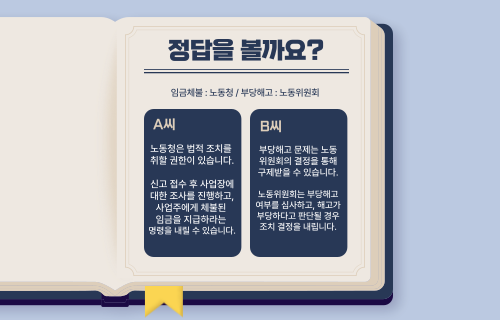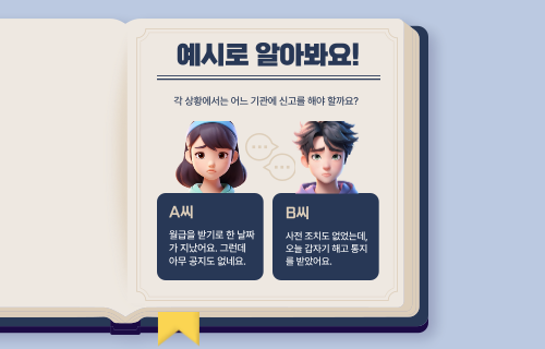 노동청과 노동위원회의 정의, 하는 일을 구분하고, 예시를 들어 이런 상황에서는 어디 기관에 신고해야 하는지를 담아봤어요.