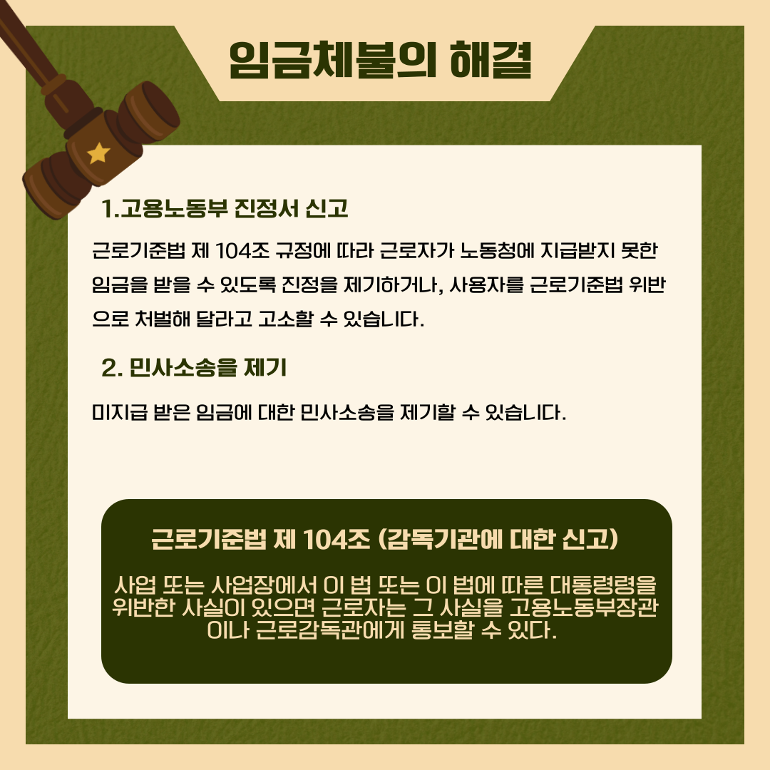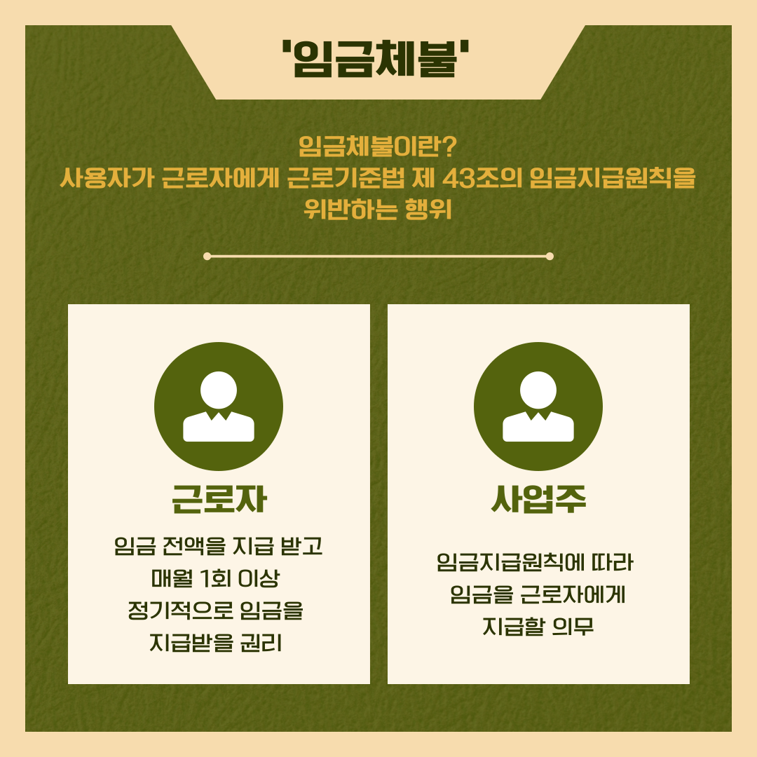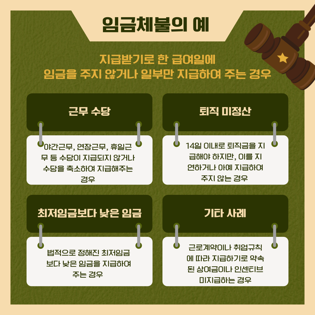 카드뉴스를 통해 임금체불에 관한 근로기준법, 임금체불 예시 등등