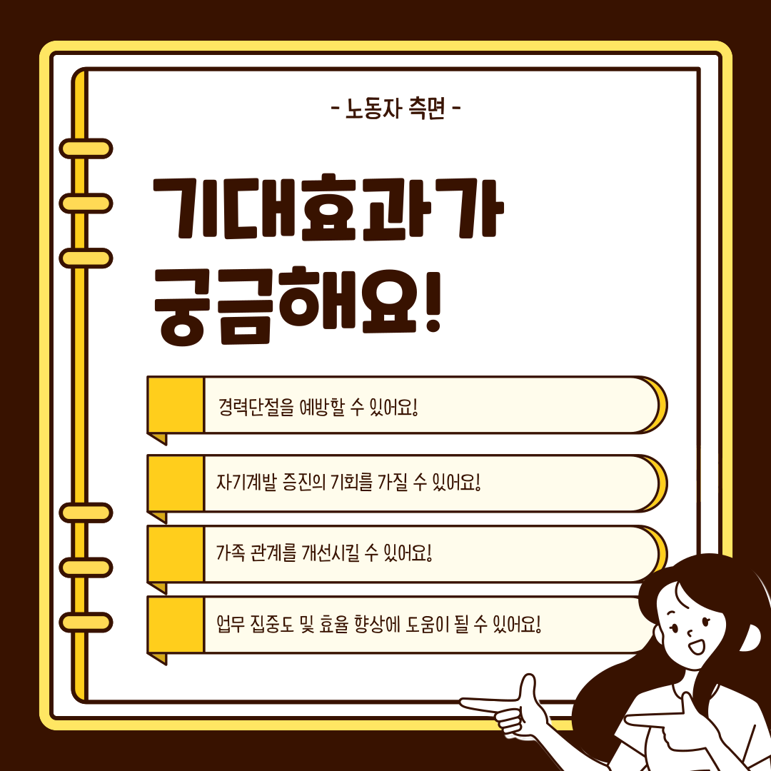 가족돌봄, 본인건강, 은퇴준비, 학업 등 일·생활 균형을 실현할 수 있도록 시행되고 있는