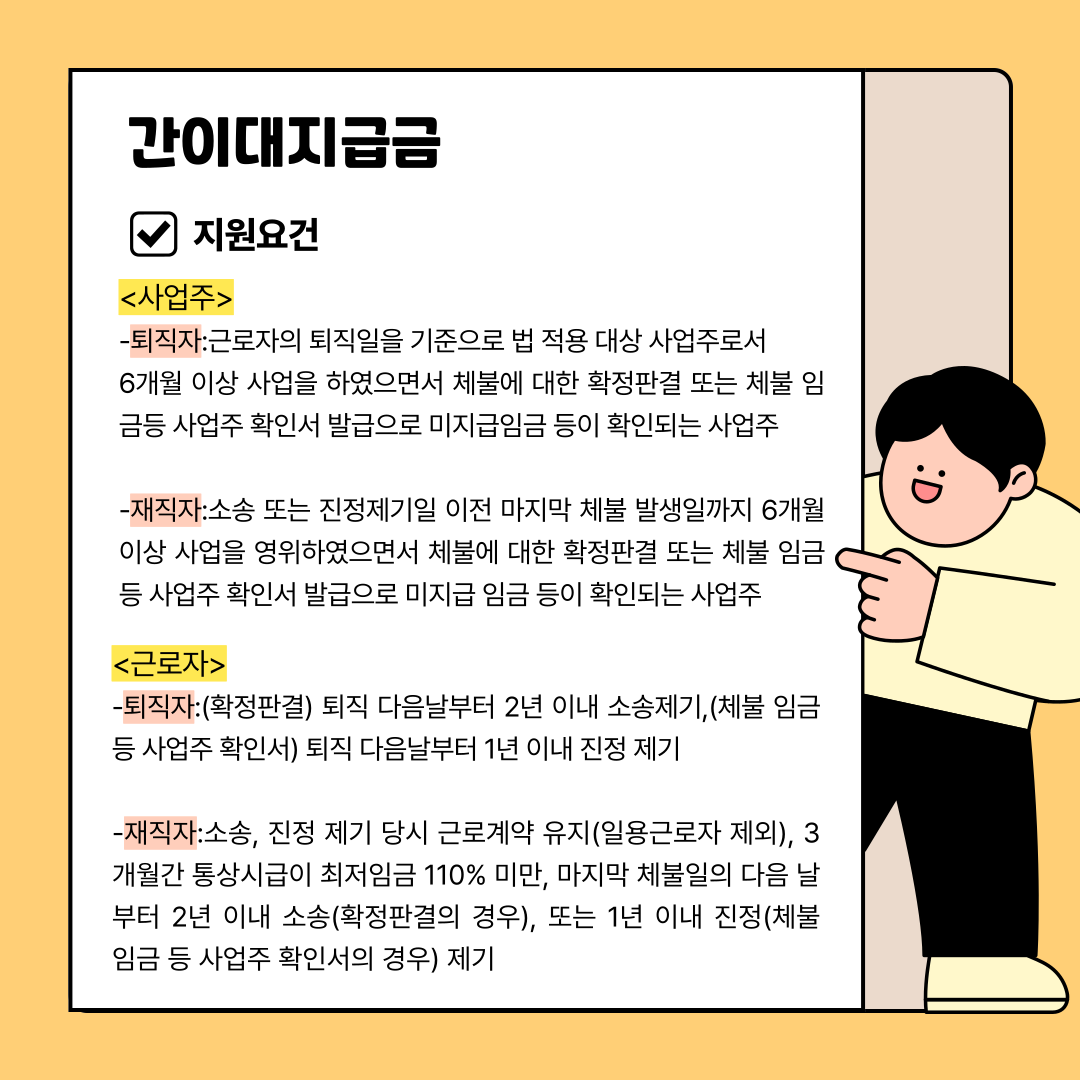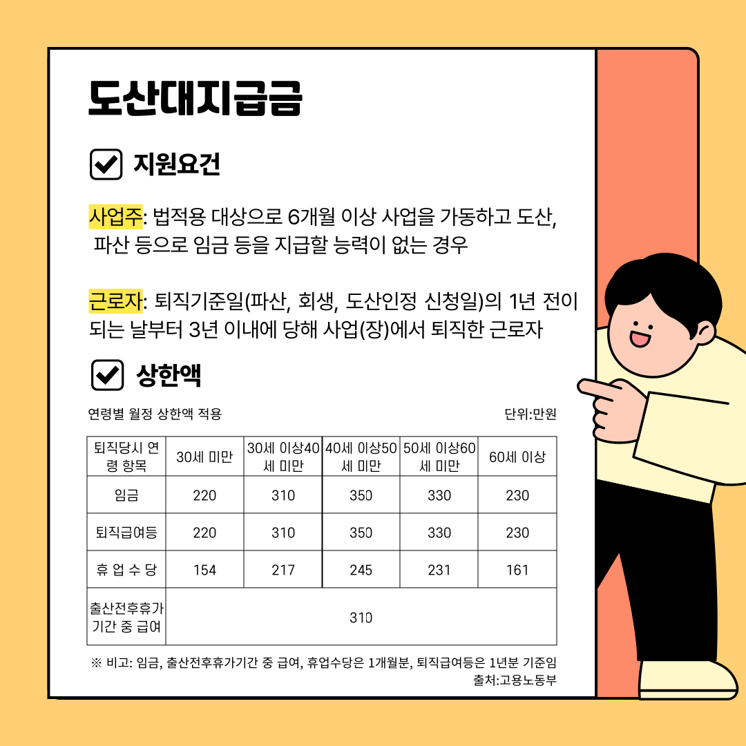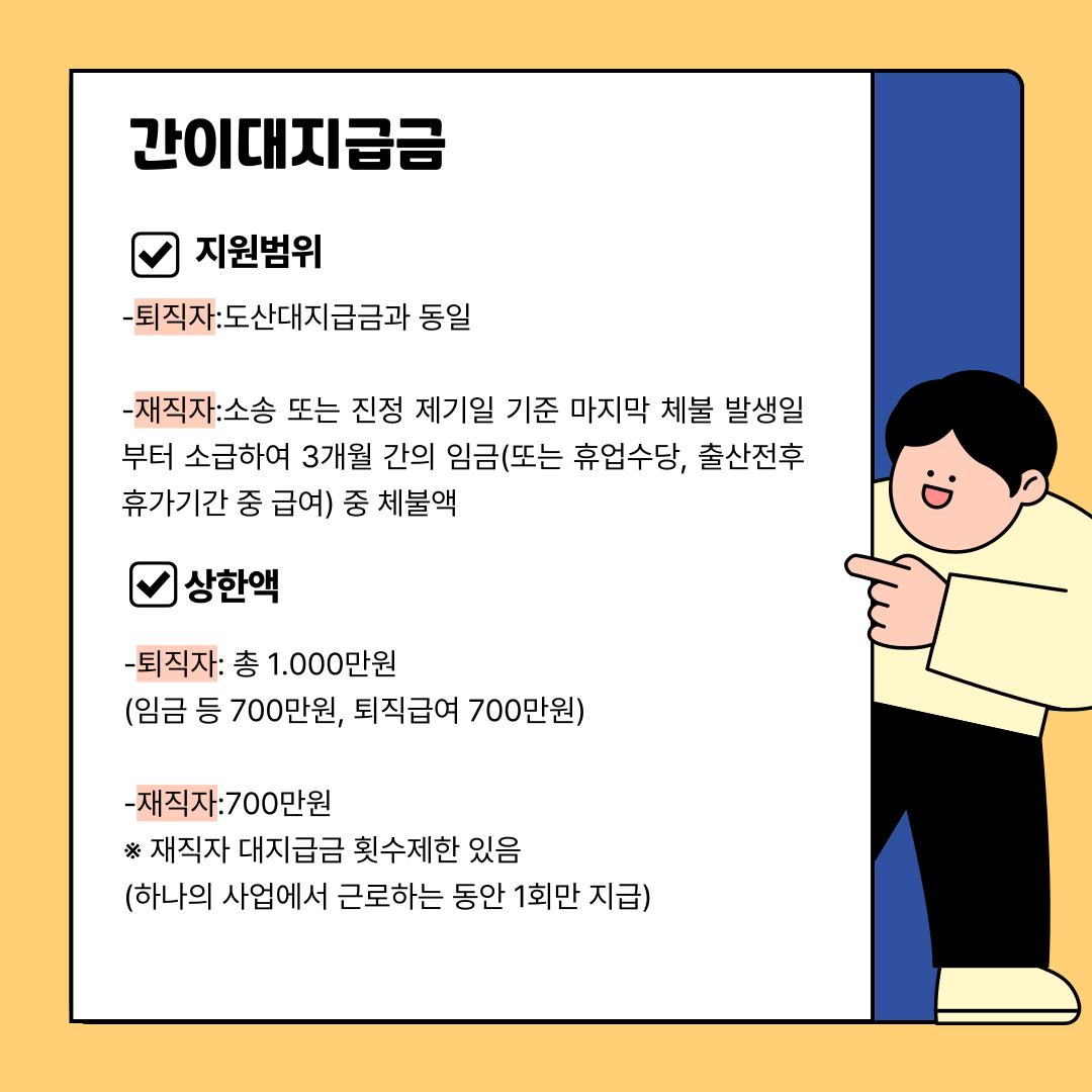 각각의 대지급금 지원요건과 상한액 등의 정보를 담은 카드뉴스를 제작해보았습니다