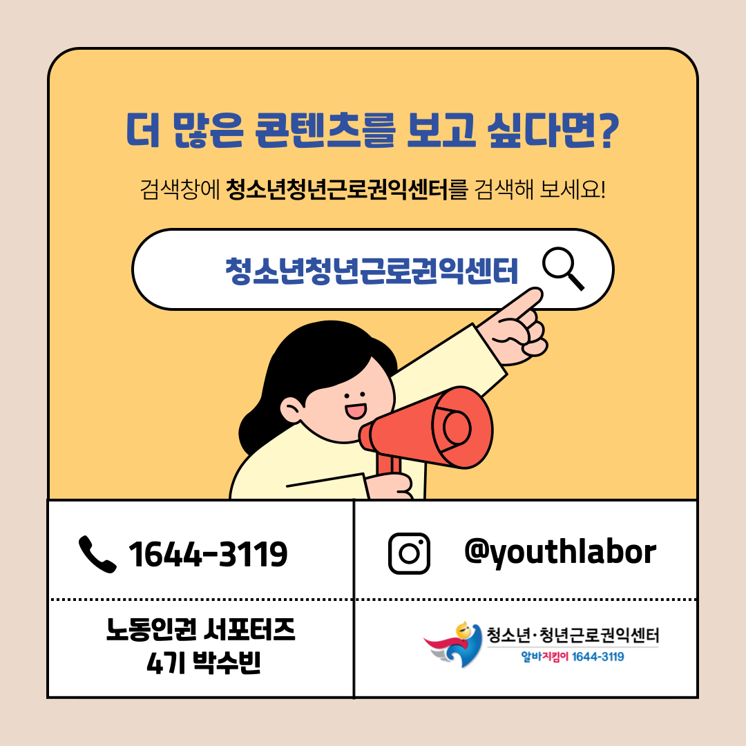 더 궁금한 것이 있다면 청소년청년근로권익센터를 찾아보세요!