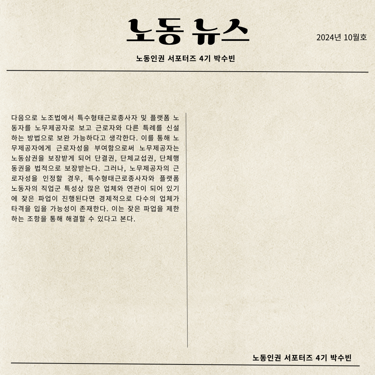 안녕하세요 노동인권 서포터즈 4기 박수빈입니다