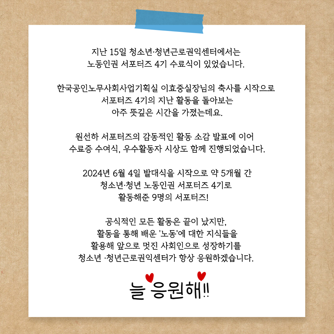 [센터소식] 노동인권 서포터즈 4기 수료식