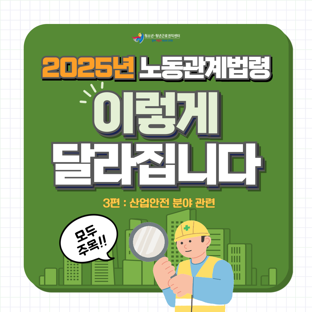 [센터홍보] 2025년 노동관계법령 이렇게 달라집니다 <3편> 산업안전 분야 관련