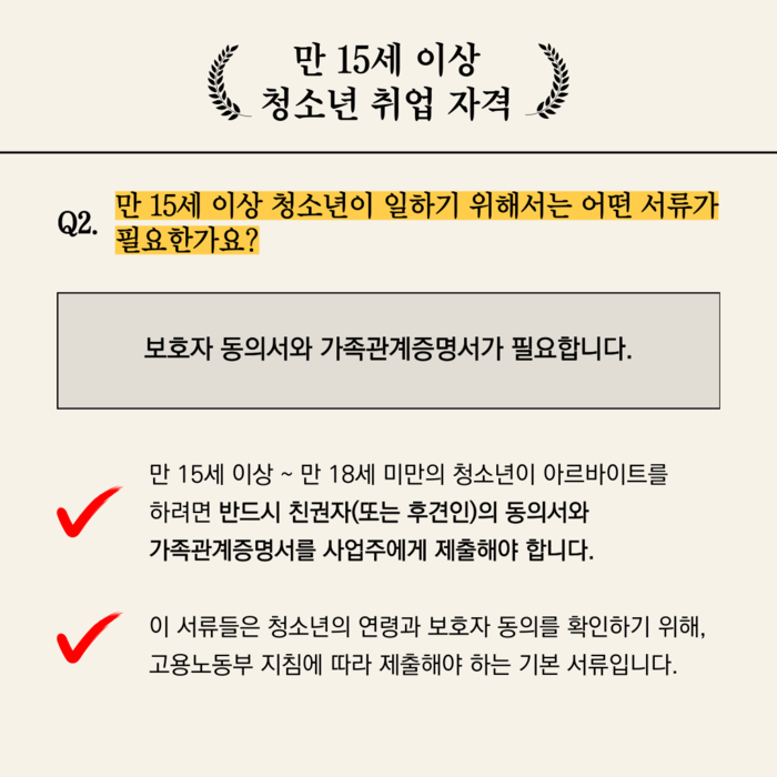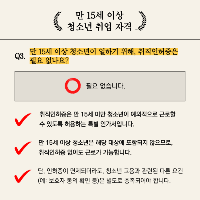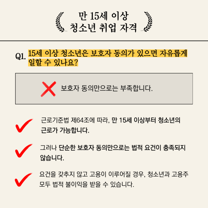 만 15세 이상 청소년이라면 누구나 일할 수 있을까요?