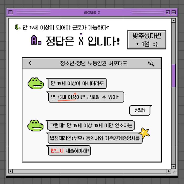 #청소년청년근로권익센터#노동인권#서포터즈#대외활동#알바인권 #아는것이힘이다 #근로권익 #청년노동 #알바상식 #인권퀴즈 #노동법퀴즈 #주휴수당 #퇴직금 #근로계약서 #권리는스스로지키자
