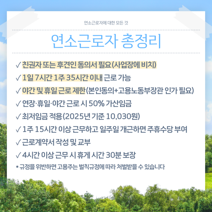 슬슬 알바 계획 세우는 친구들 많을 텐데, 혹시 연소근로자에 대해 잘 알고 있나요?