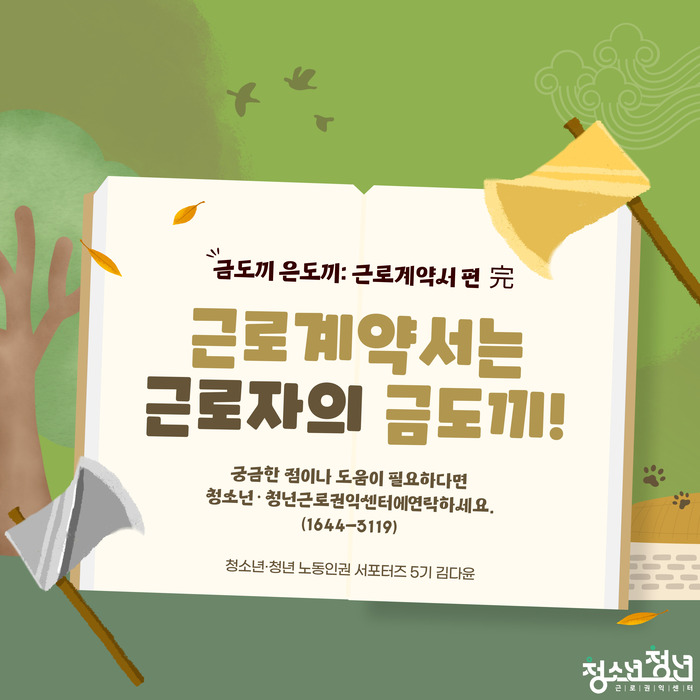 [노동인권 서포터즈 5기][카드뉴스] 전래동화가 알려주는 근로권익 이야기 - 금도끼 은도끼 : 근로계약서 편